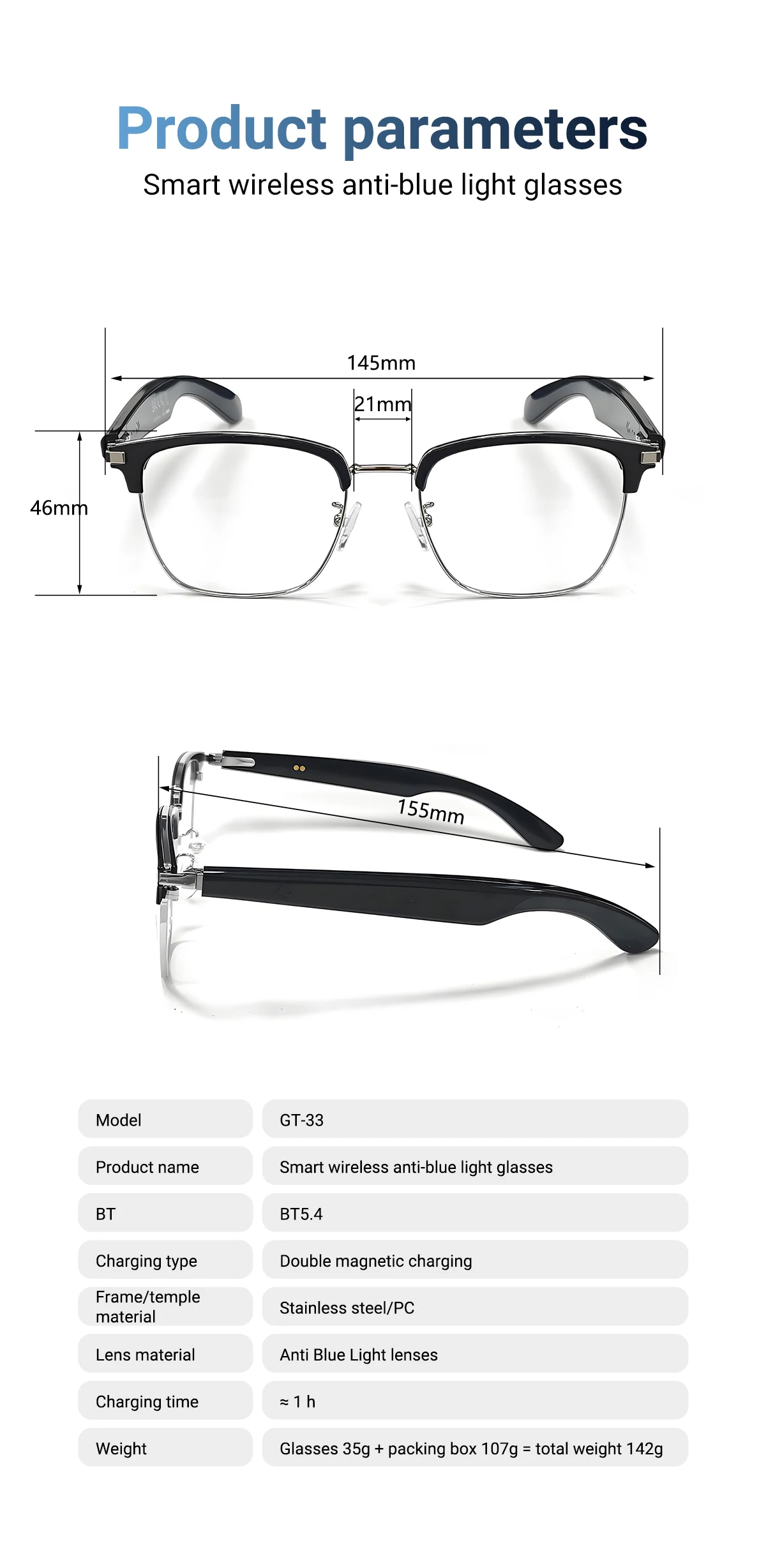 GT-33 Smart wireless anti-blue light glassesTranslation Sunglasses Voice RemoteControl Music EyewearWaterproof sports spectacles