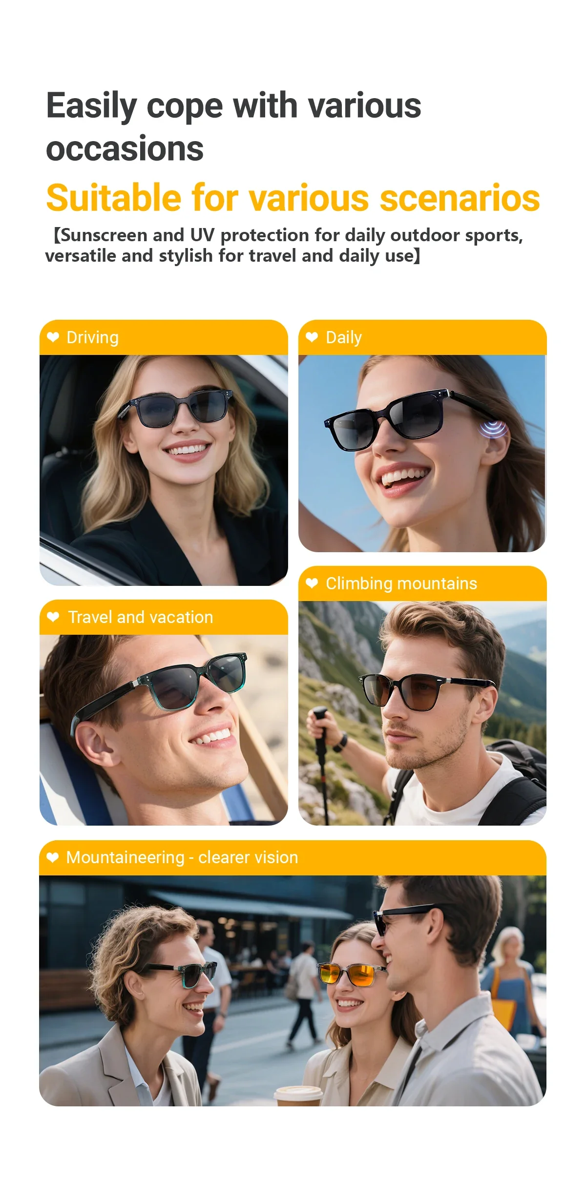 *AI Bluetooth Audio Call Fashion Smart Glasses: Equipped with functions such as AI intelligent voice and video real-time translation, AI dialogue and Q&A, AI intelligent translation (including translator mode and the translation mode combining glasses and mobile phone, which can customize the translation of more than 163 languages)