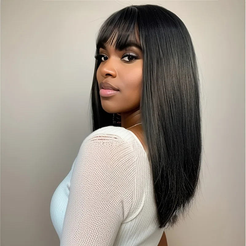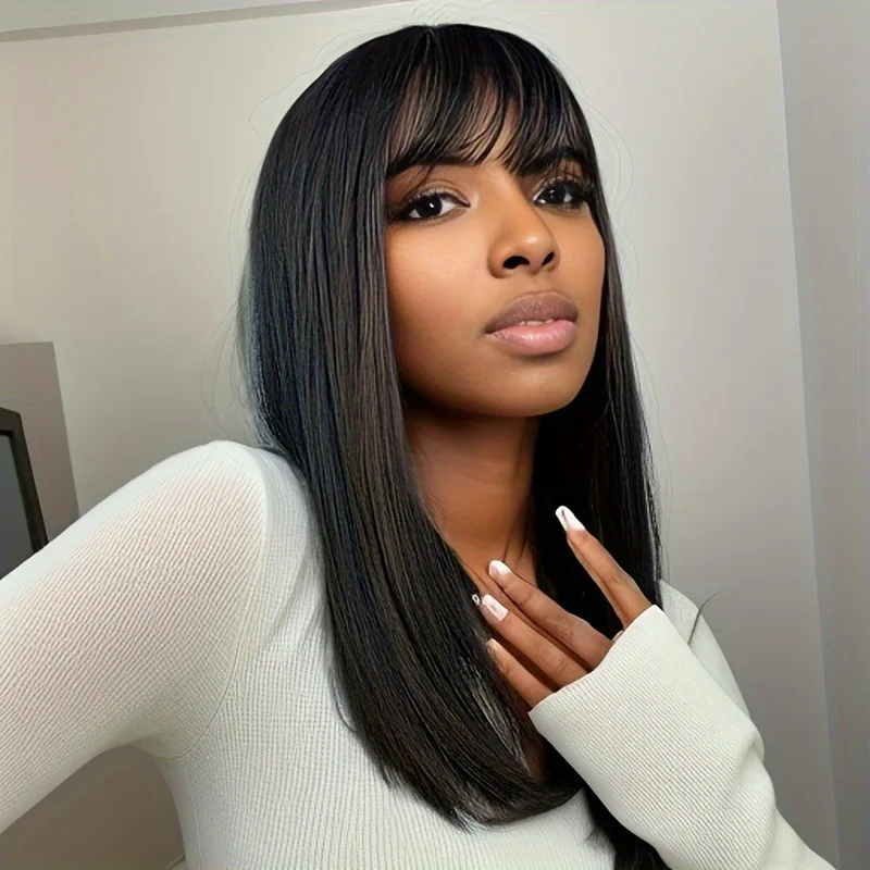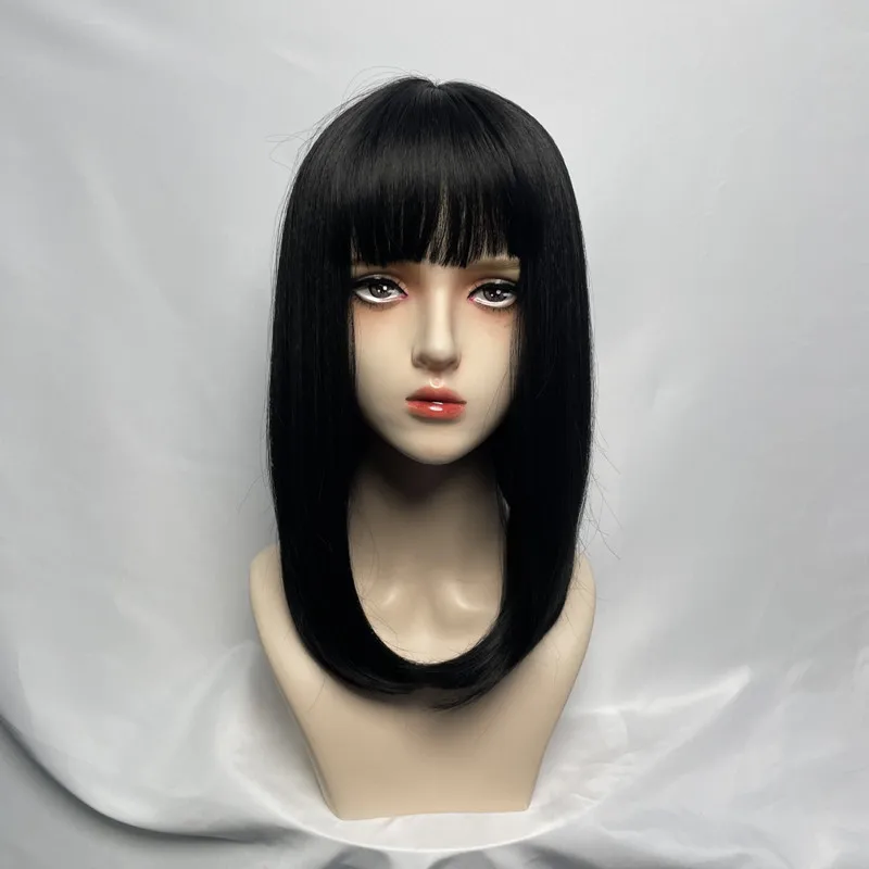Hair Extensions Synthetic Fiber African Wigs for Women Natural Breathable Head Cover Hat Black Medium Long Straight Ladies Wig