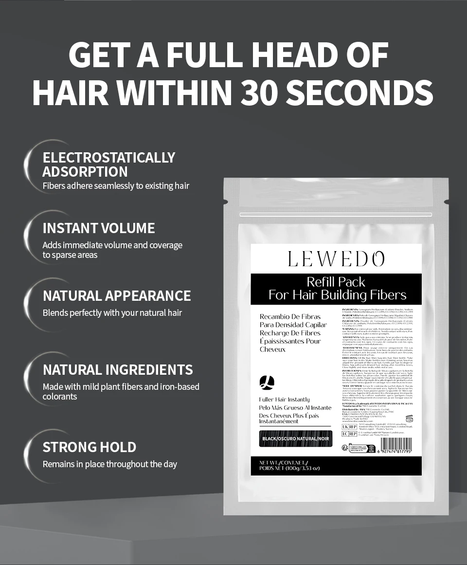 Package Included: 1 PC * 100g Hair Building Fibers Refill Bag