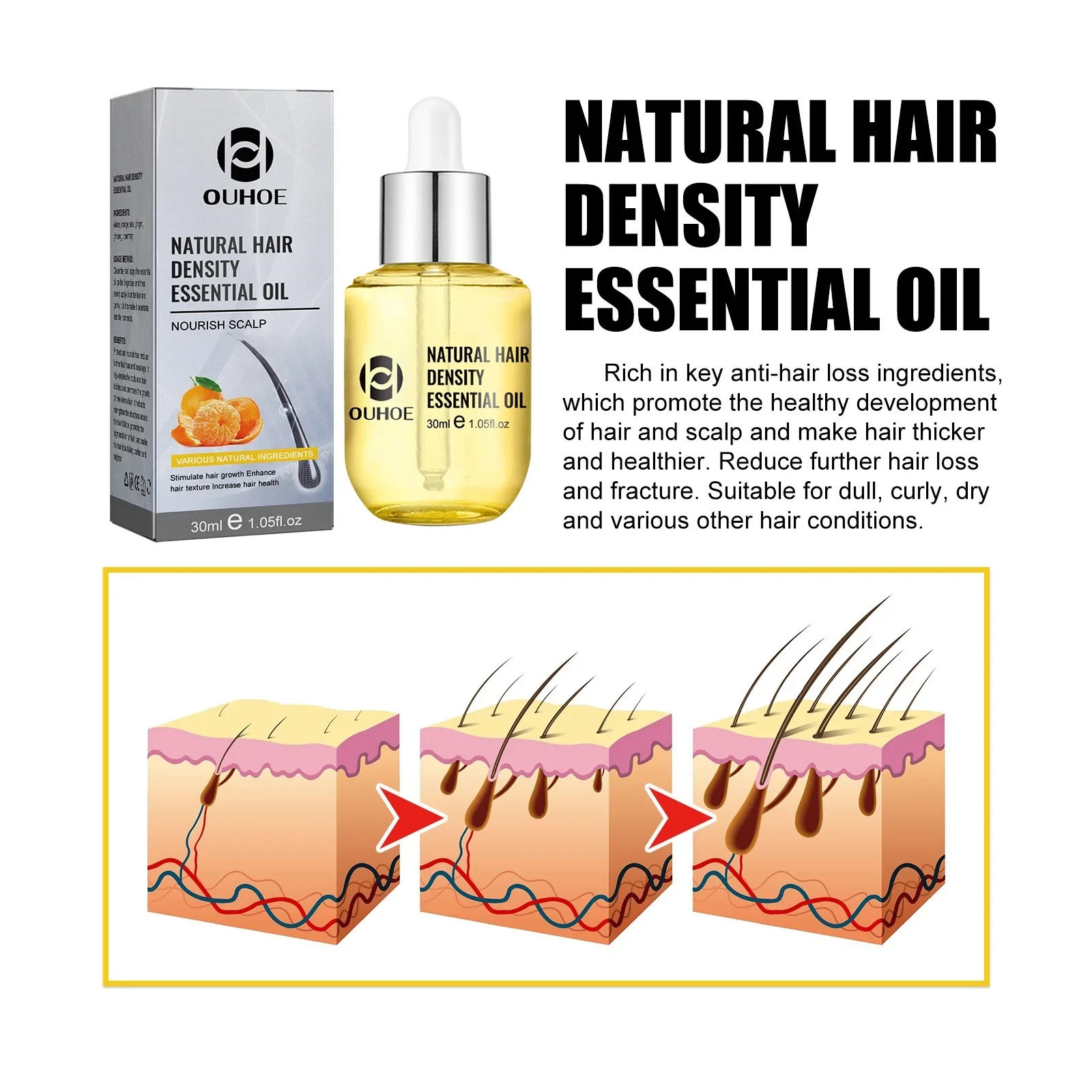OUHOE Hair Growth Essential Oil Treatment Seborrheic Alopecia Follicle Repairing Reduce Hairline Baldness Dense Growing Hairs Lotion