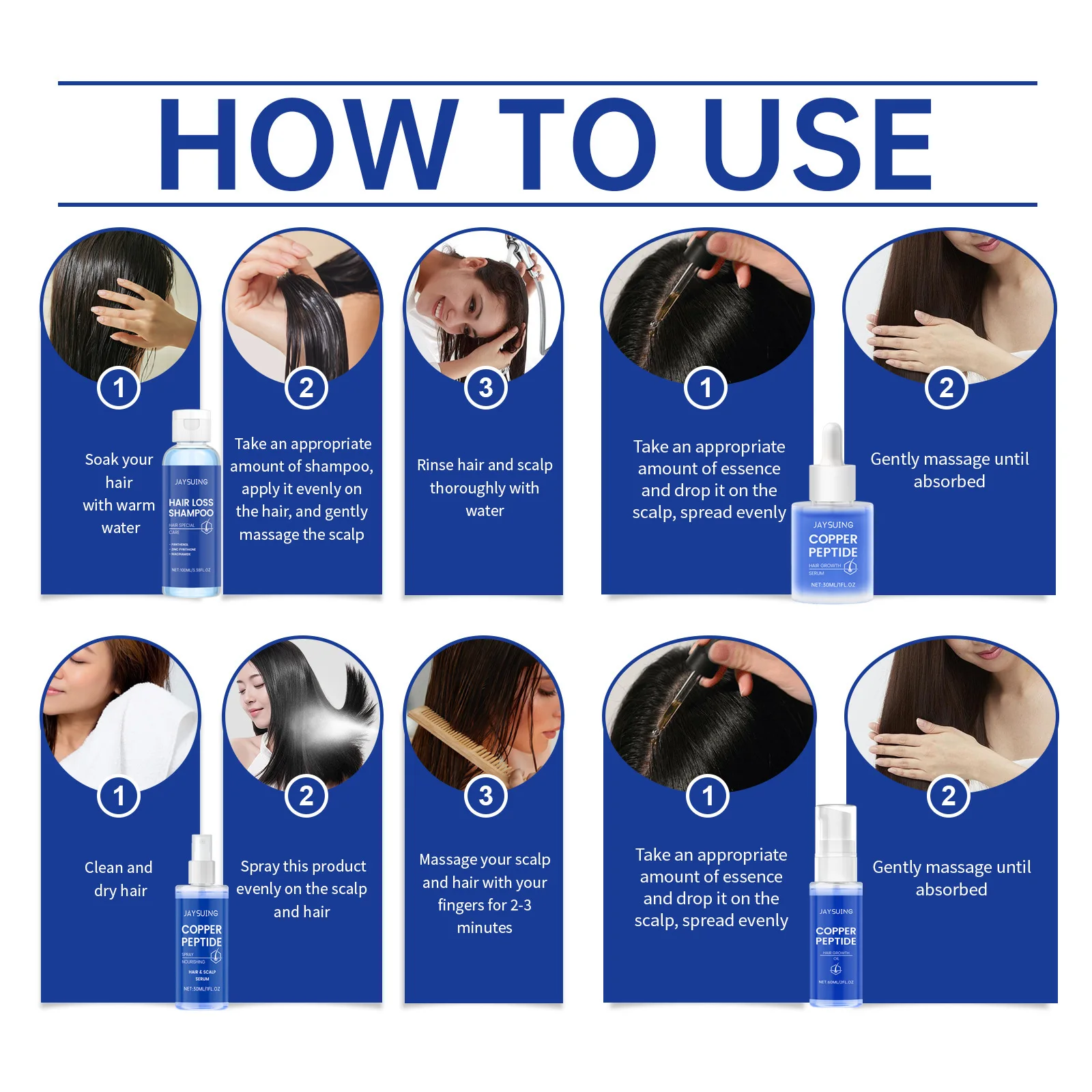 Jaysuing Hair Growth Products Copper Peptide Fast Growing Hair Oil Repair Damaged Nourish Scalp Shiny Thickening Strengthening Shampoo 30ml/60ml/100ml