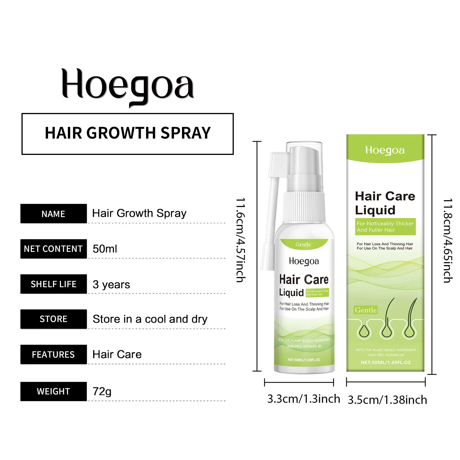 HOEGOA Hair Growth Spray Regrowth Prevent Hair Loss Anti Baldness Strengthen Roots Repair Damaged Improve Dry Curly Hair Growing Serum 50ml