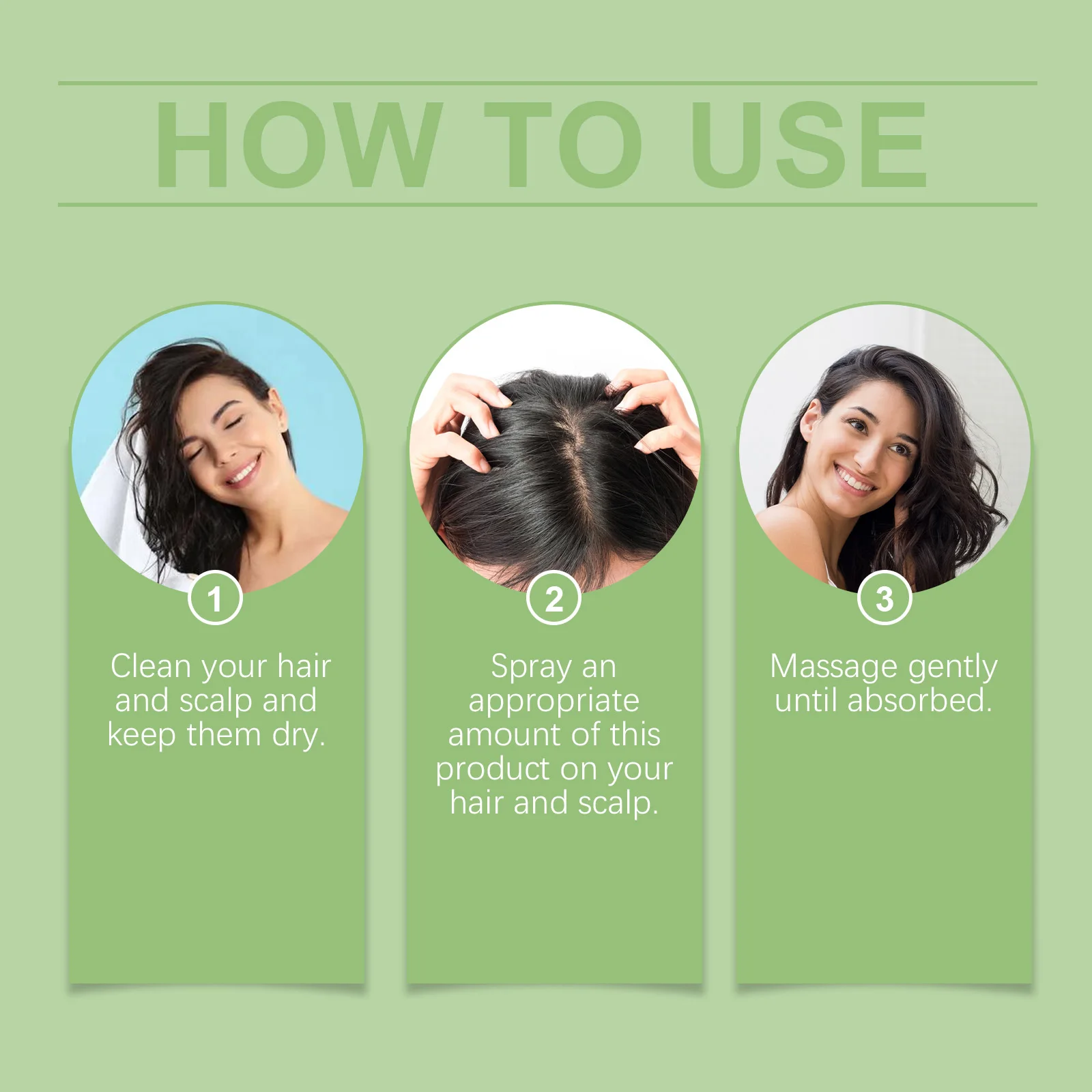 2.Spray an appropriate amount of this product on your hair and scalp.