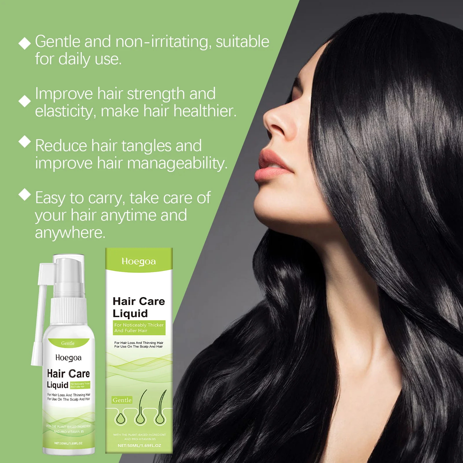 1.This hair growth spray protects and nourishes hair, reduces further hair loss, protects the scalp, can promote hair growth, make hair stronger, thicker and longer lasting, restore hair vitality, make hair grow naturally and nourish hair.