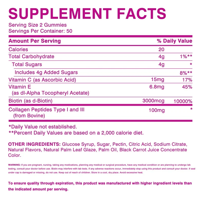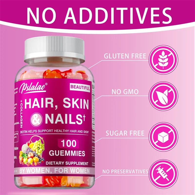 Hair Skin Nails Gummies - Increases Skin Elasticity, Skin Beauty, Promotes Hair Growth, Supports Healthy Hair, Skin, and Nails