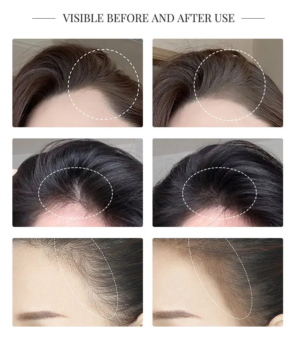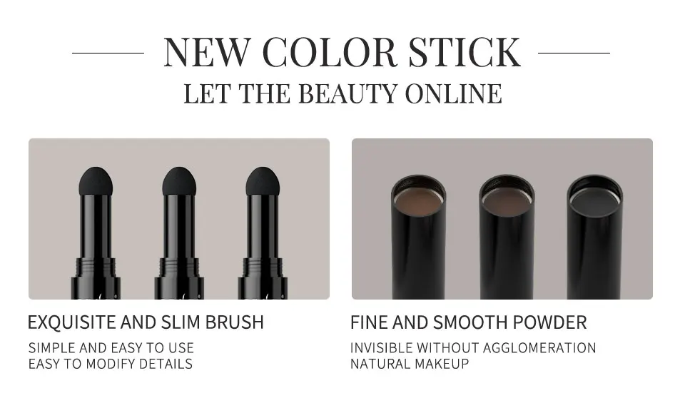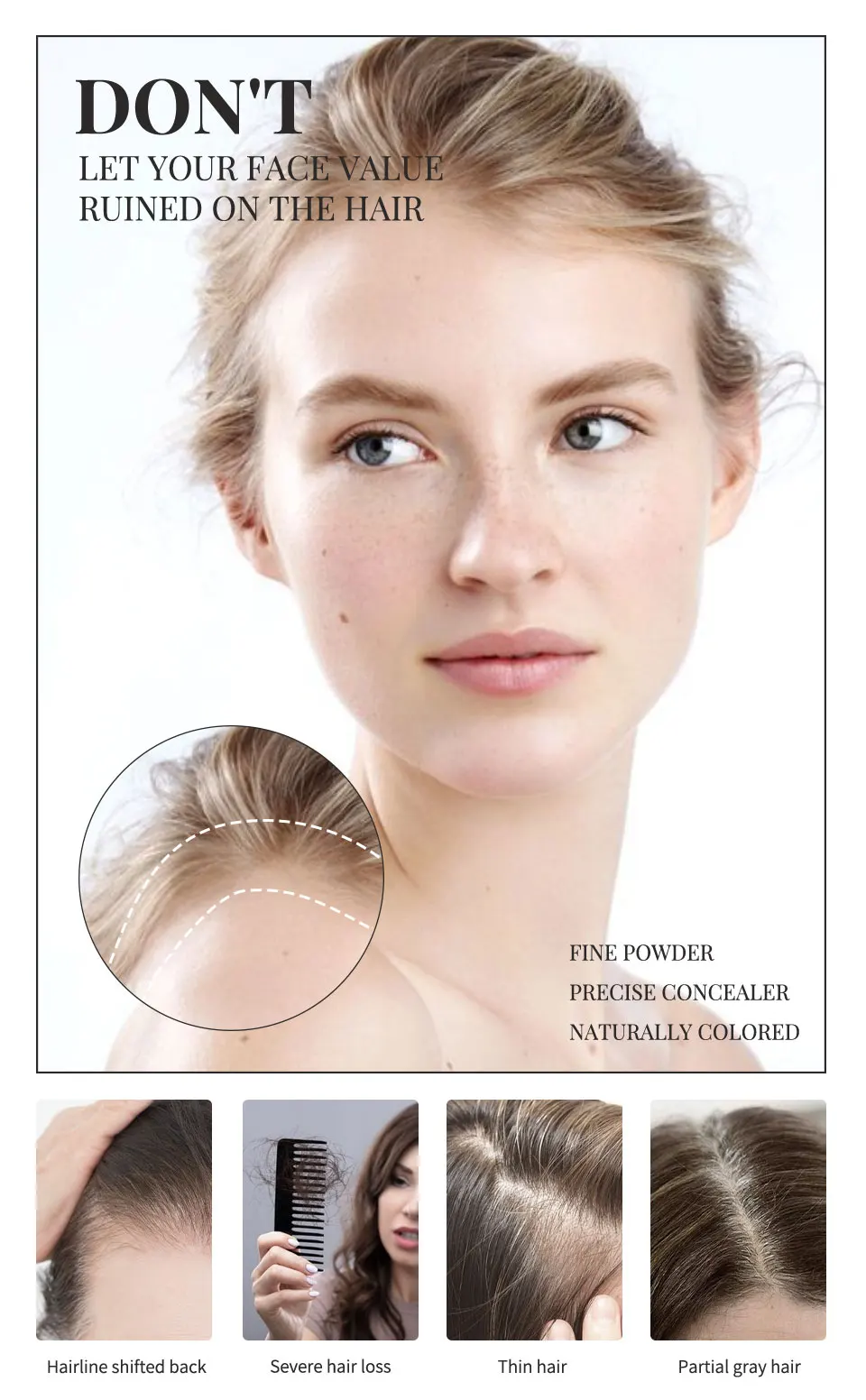 When the hair is dry, open the product,, and use the tip of the pen to dip the hairline powder on the other end, gently press and apply it to the hairline.