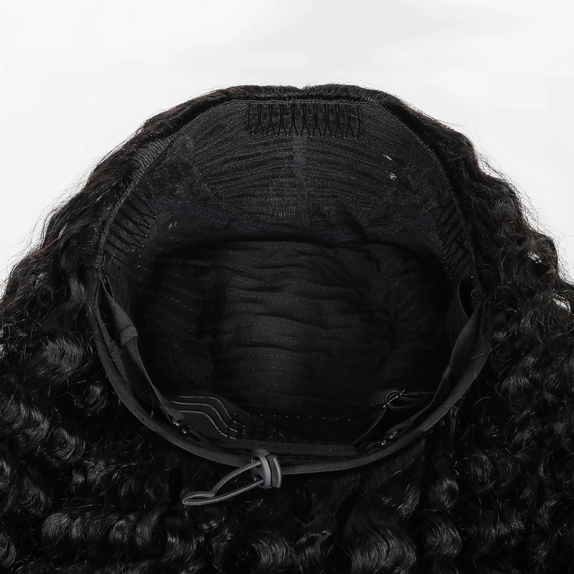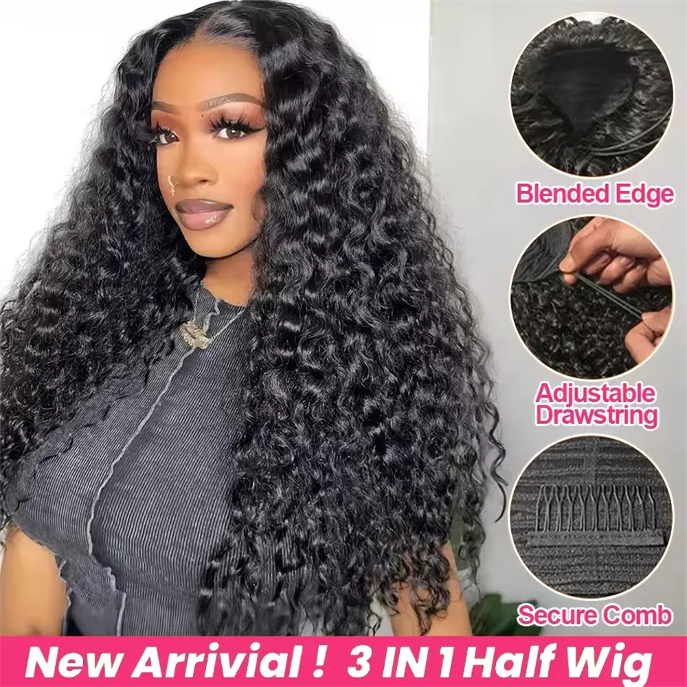 Half Wig Glueless Human Hair Wigs With Drawstring Seamless Clips 250 Density Kinky Curly Half Wigs Full Machine Made Wig