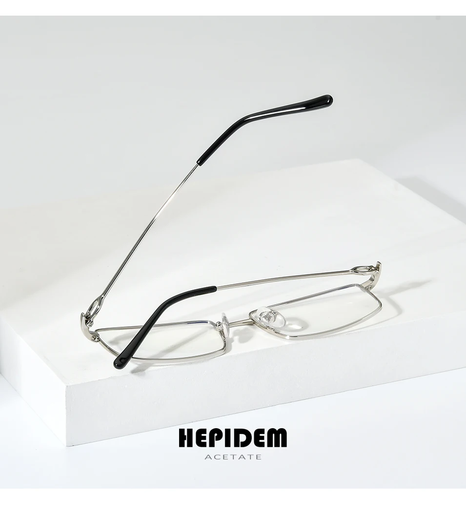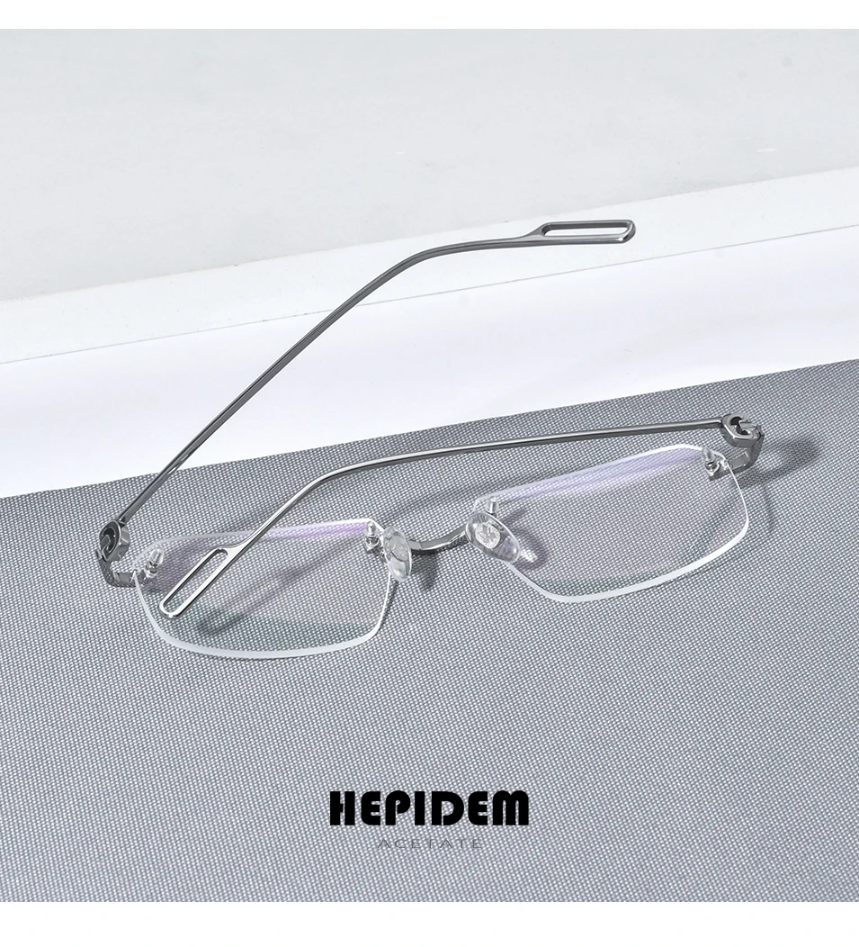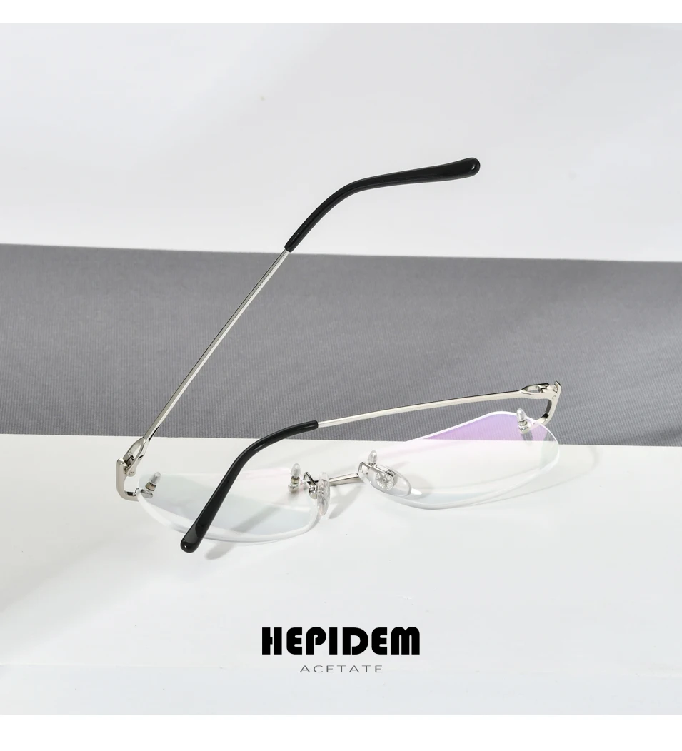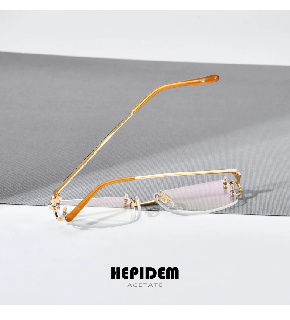 HEPIDEM Alloy Glasses Frame Men Luxury Famous Brand Design Retro Vintage Square Eyeglasses Rimless Spectacles Frameless Eyewear