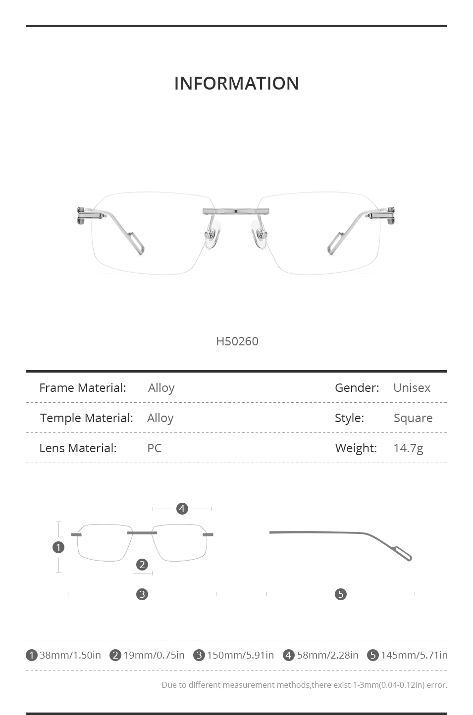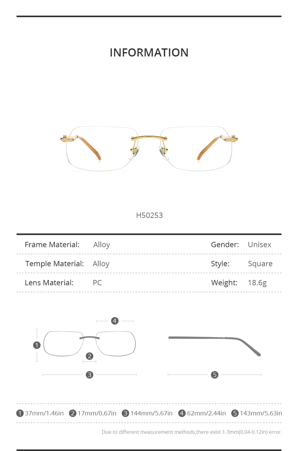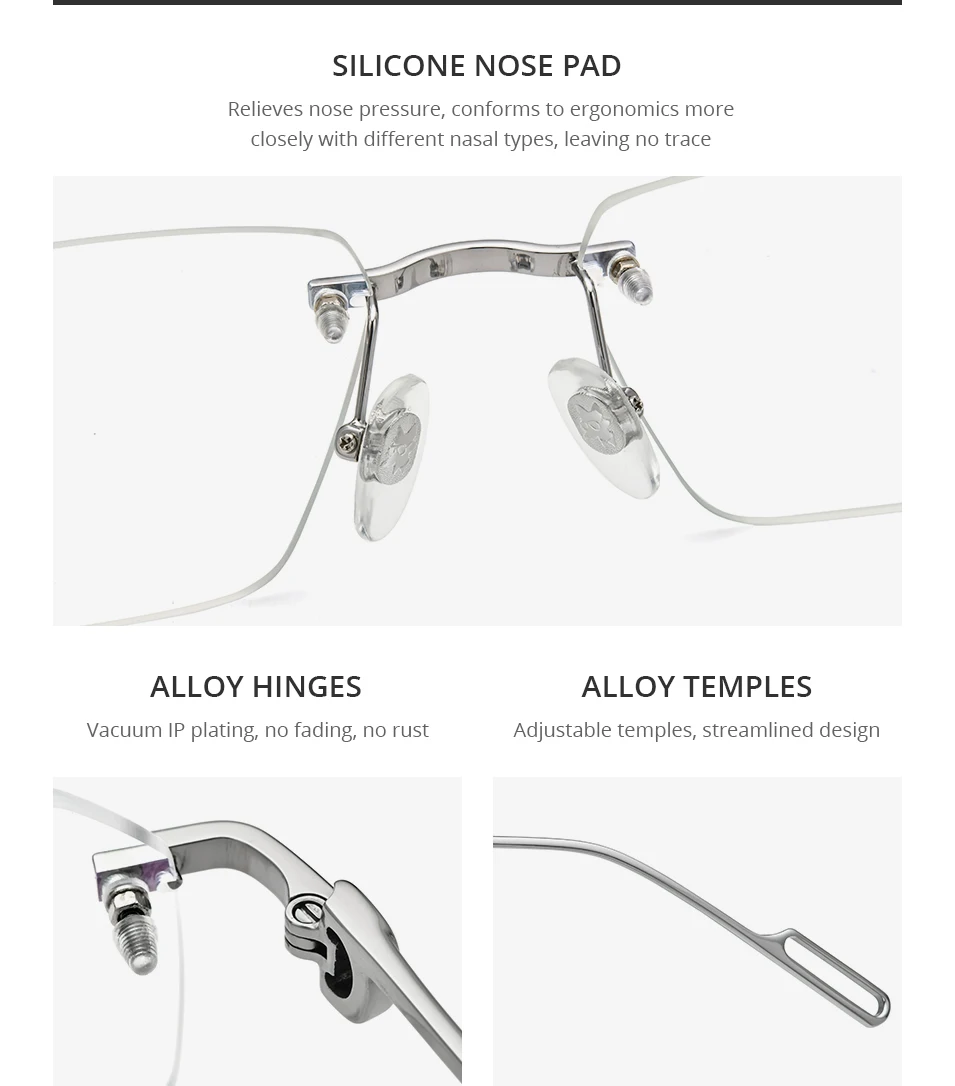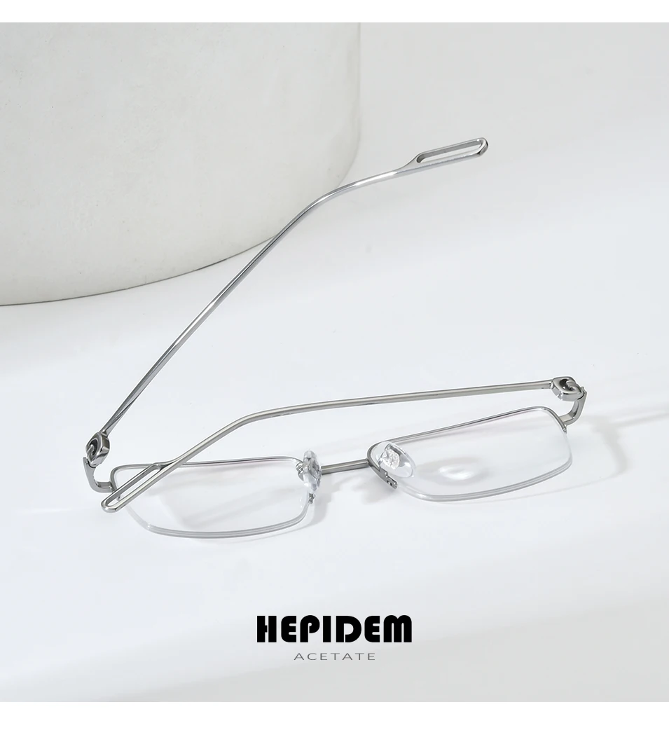 HEPIDEM Alloy Glasses Frame Men Luxury Famous Brand Design Retro Vintage Square Eyeglasses Rimless Spectacles Frameless Eyewear