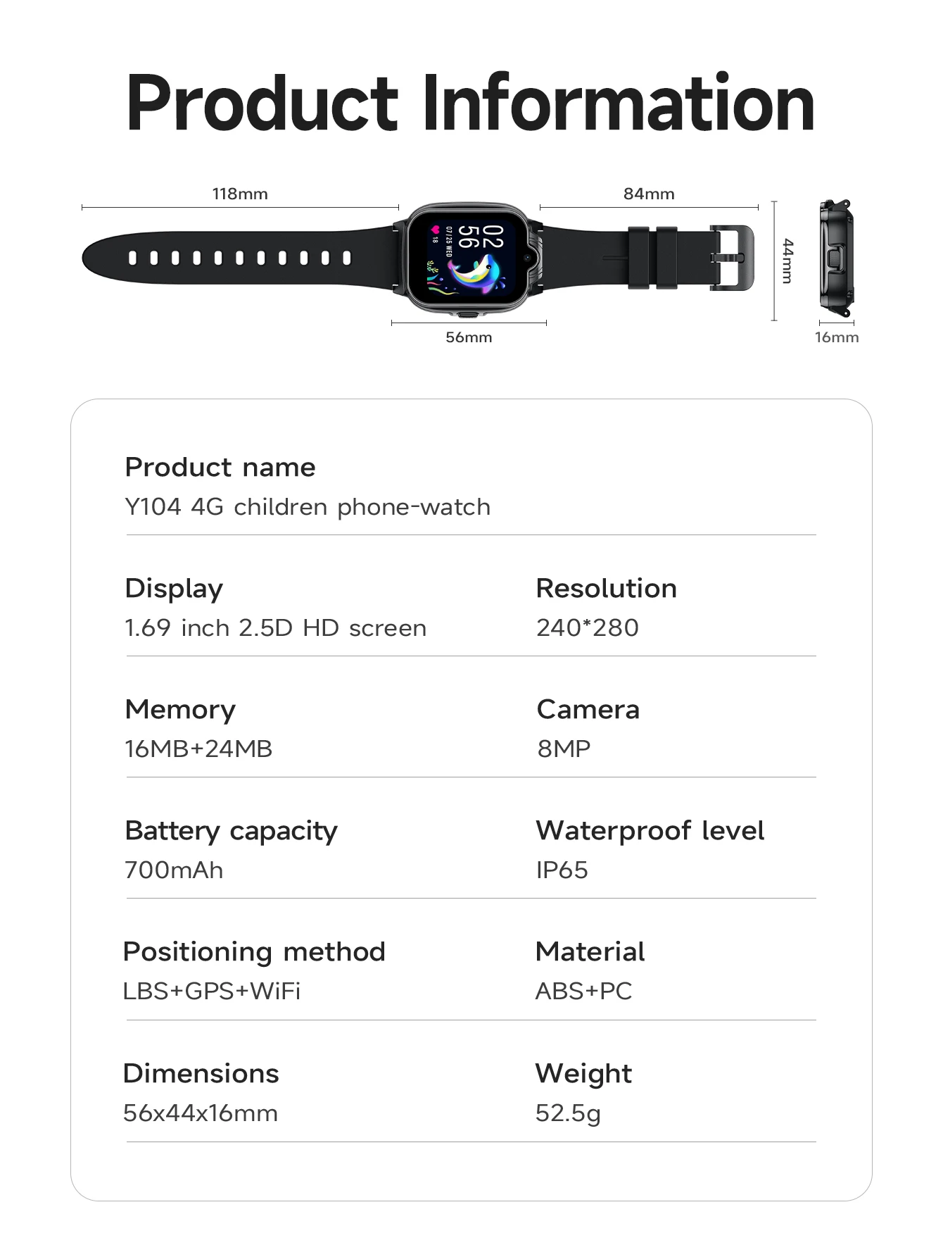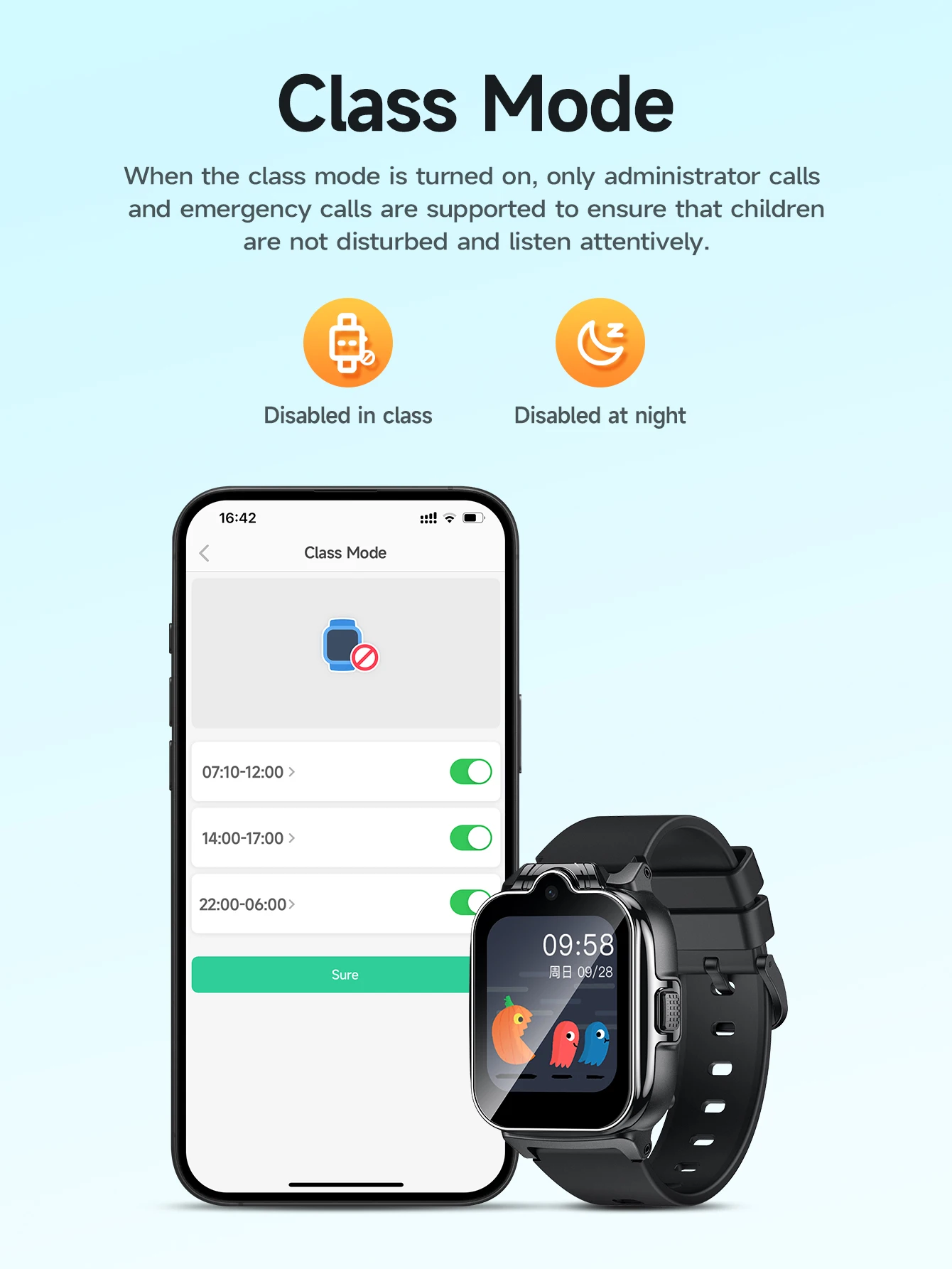 HOCO 1.6inch 2.5D HD Touch Screen 4G Children Phone Watch LBS GPS WIFI Positioning Kid Smart Watch Support GSM WCDMA FDD Network