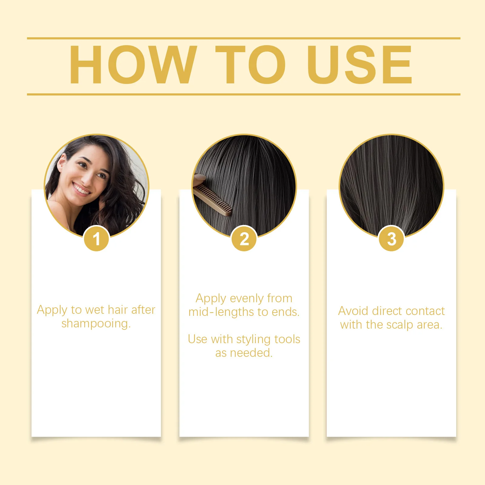 2.Apply evenly from mid-lengths to ends.Use with styling tools as needed.