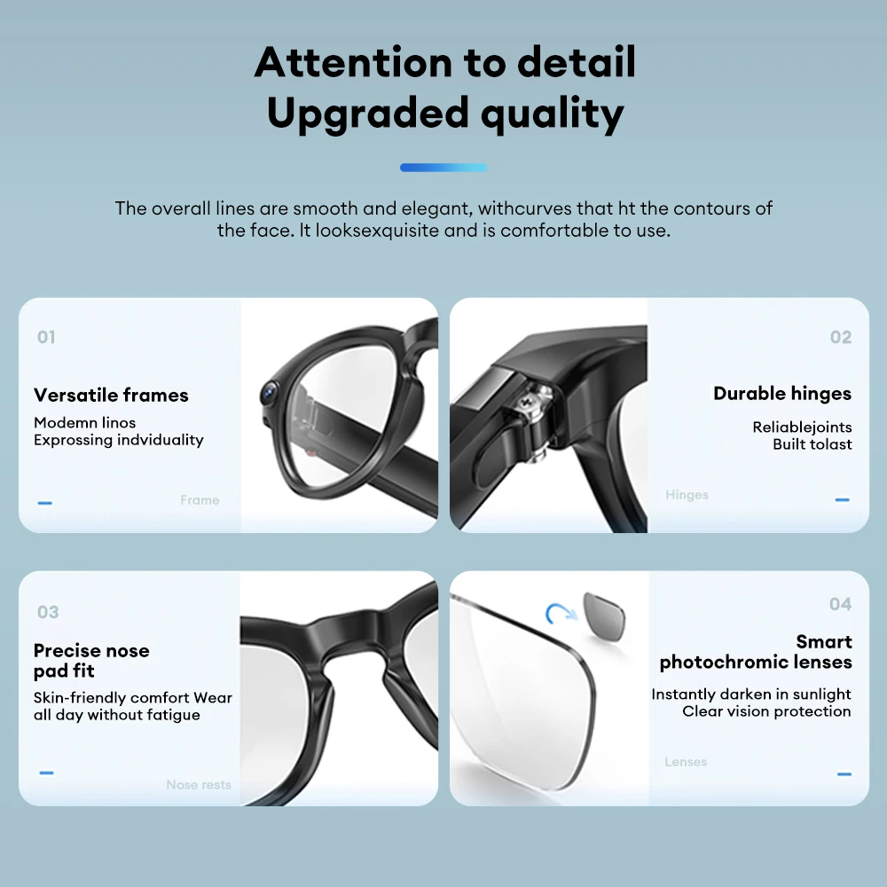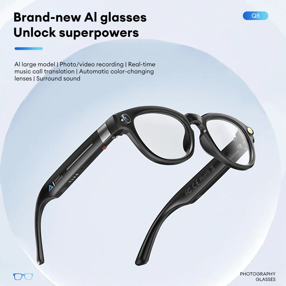 HYUNDAI Q8 Bluetooth glasses headset 5.4 4K HD camera AI model 98% accuracy Super built-in battery fashion sunglasses