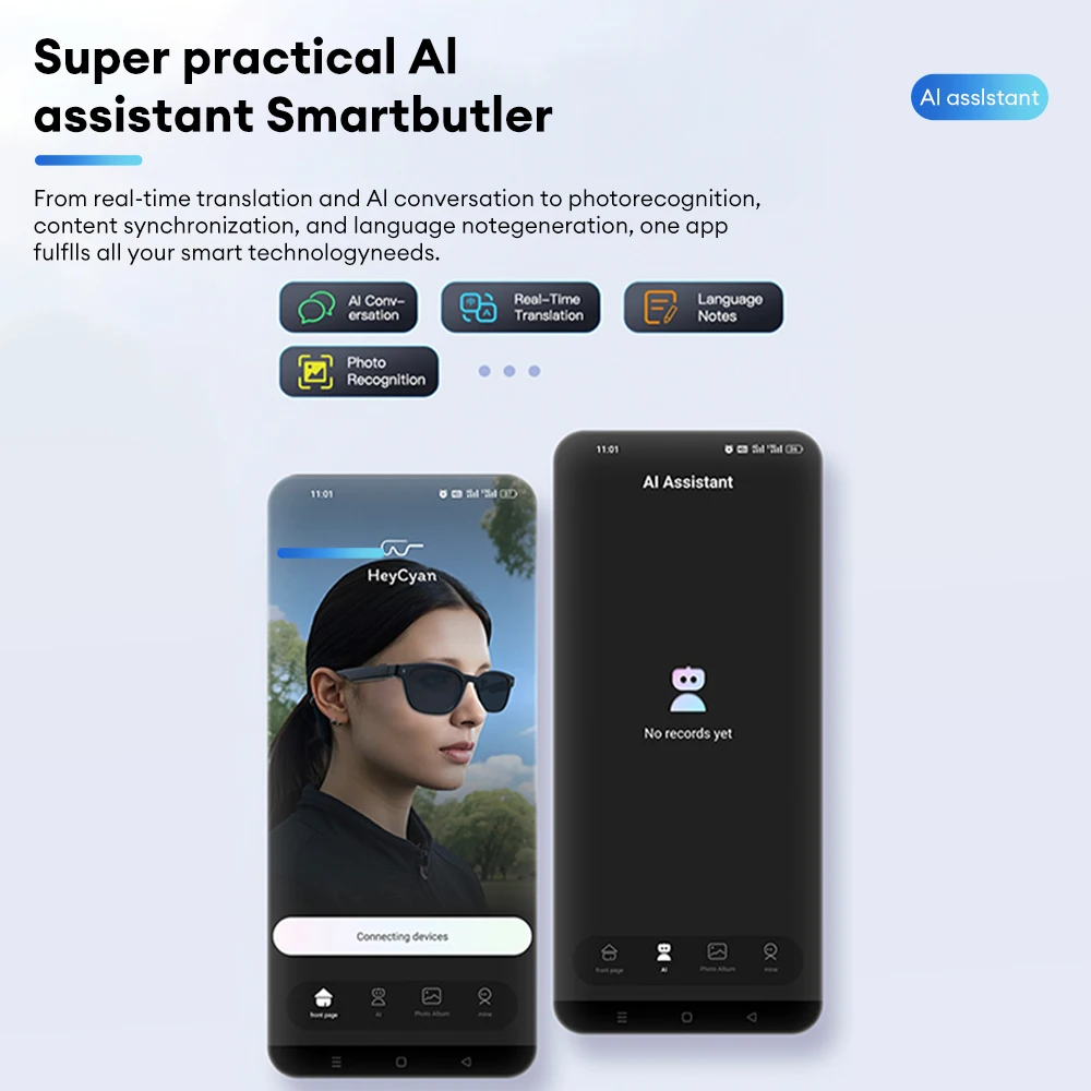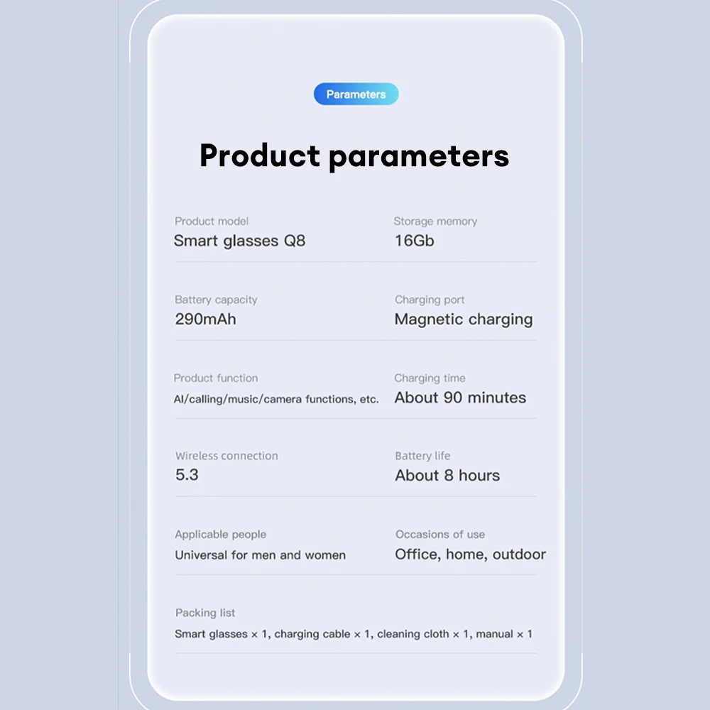 【Powerful AI Functions】: This HYUNAI HY-Q8 Bluetooth Glasses Earphones feature 200+ built-in apps for 10+ scenarios (e.g., copy rewrite, Excel formulas) via AI Assistant; supports AI Chat (user-friendly interface) and AI Voice Dialogue (smart voice replies) for seamless interaction.