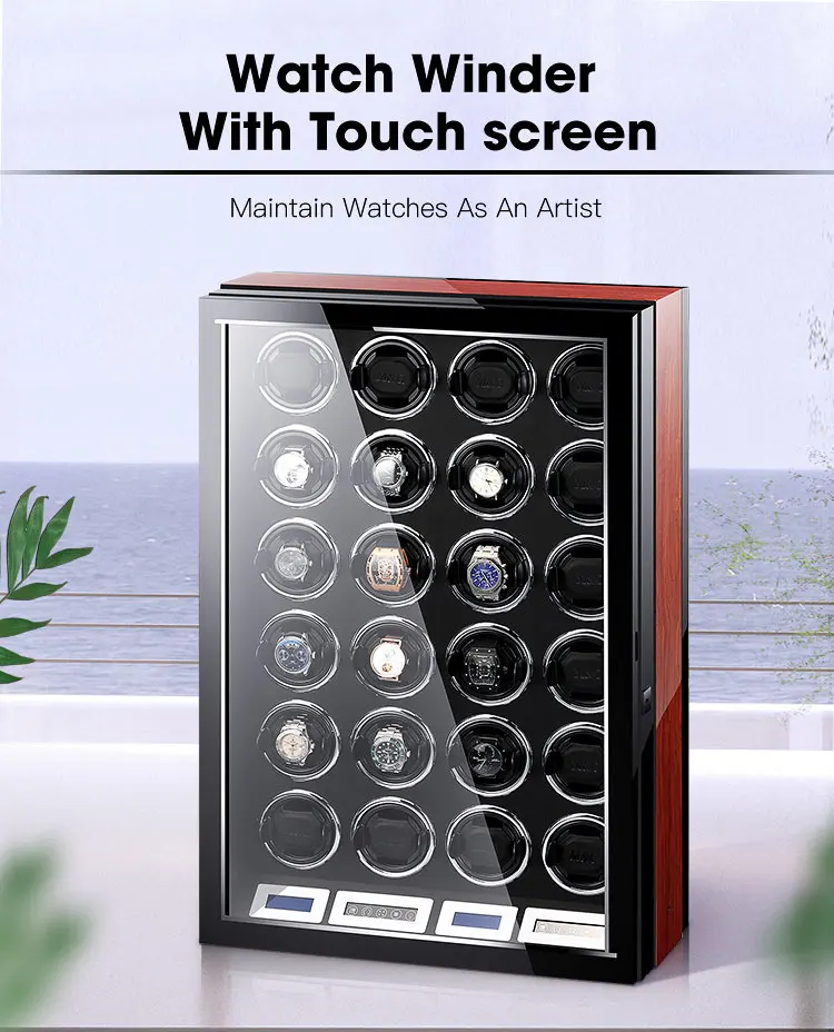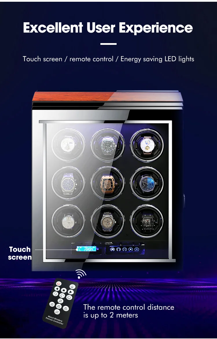 IBBETON High Quality Watch Winder for 2 4 6 9 Slot Automatic Watches with Mabuchi Motor LCD Touch Screen Wooden Watch Safe Box