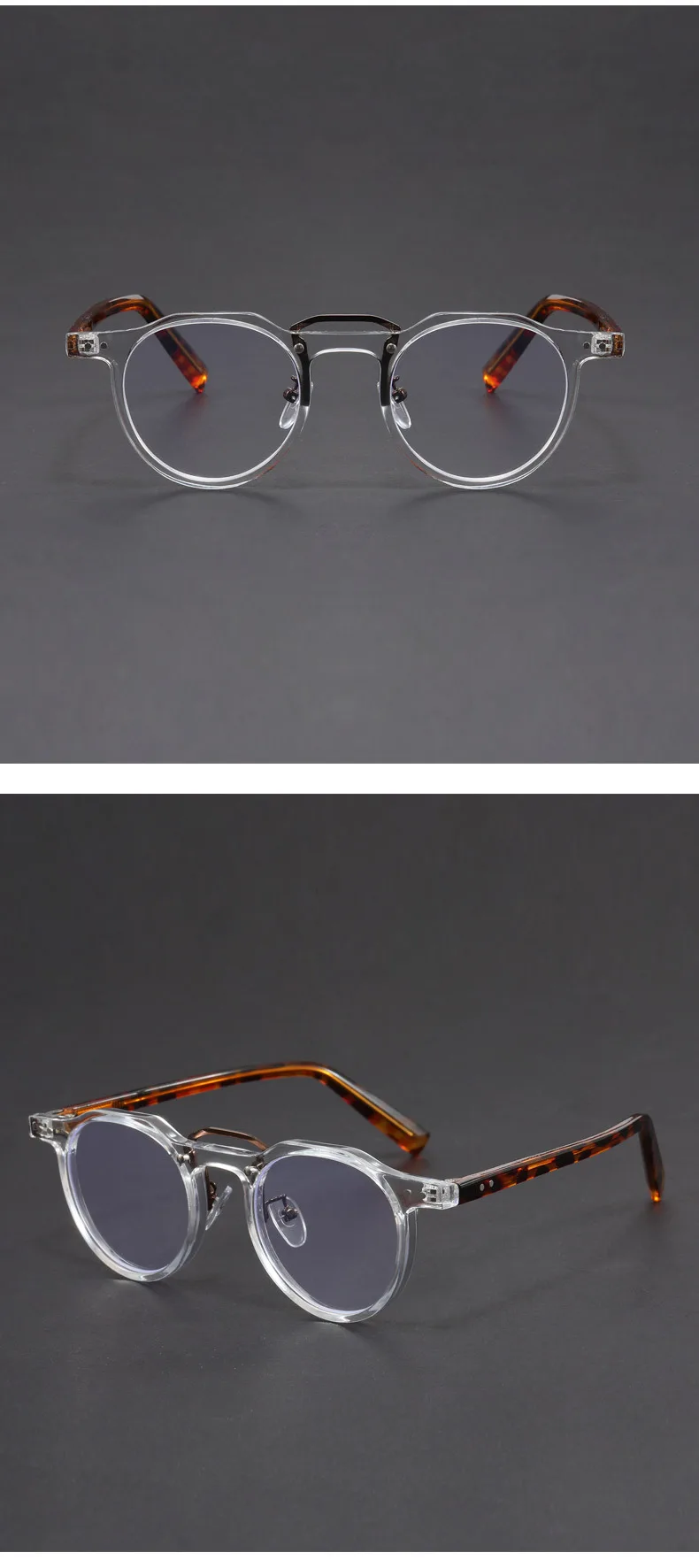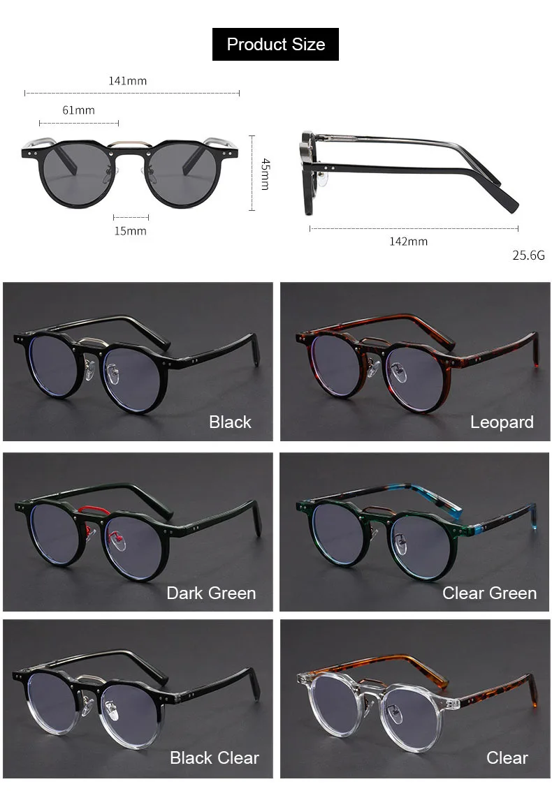 Imitation Acetate Round Glasses Frame Retro Japanese Myopia Optical Eyeglasses frame for Men Women Sturdy Metal inset Eyewear