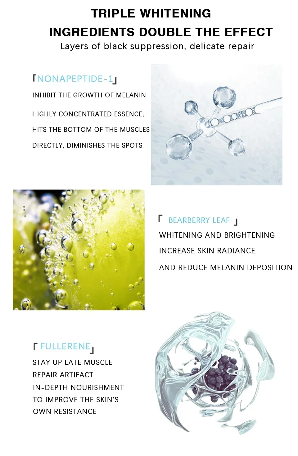 Característica: sensação aquosa e textura suave de seda, combinada com éster de fosfato de ascorbato de aminopropanol e extrato de atividade de polipeptídeo, adicionar nutrientes às camadas da pele, equilibrar a umidade da pele e óleo, com retinol O éster de retinyl nutre profundamente e repõe a pele, melhora as linhas finas faciais, embotamento, secura e outros problemas de pele, rejuvenesce a pele com firmeza jovem e birght e aparência hidratante