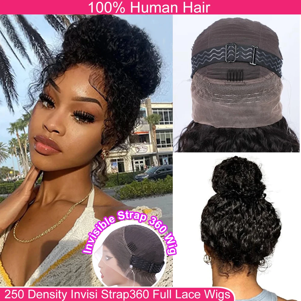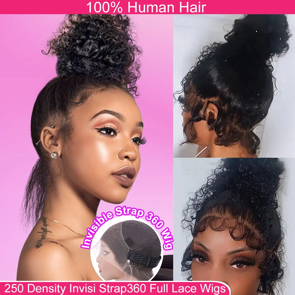 Invisi Strap HD 360 Full Lace Wig Human Hair Precut 360 Lace Frontal Wig Drawstring Snug Fit Glueless Wig Preplucked 250 Densit