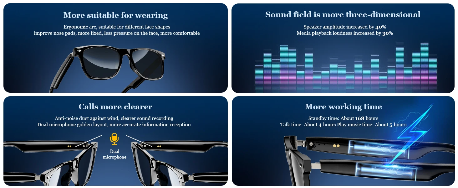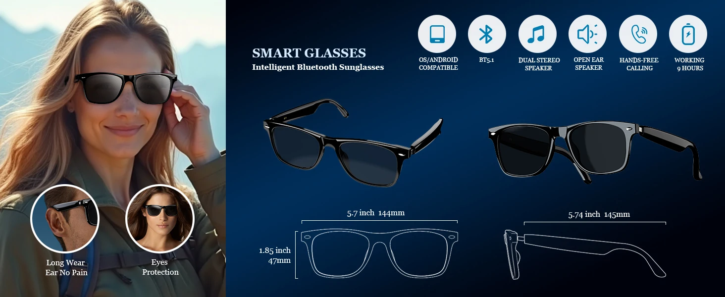 IUTECH Smart Glasses Bluetooth Call Smart Sunglasses Outdoor Travel Runing Fishing Cycling Smart Sunglasses for Men Women