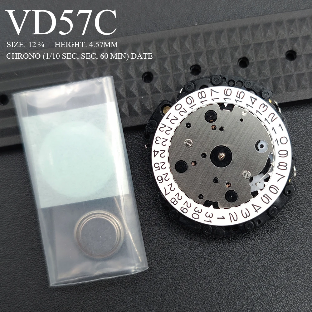 Japan Original VD57 VD57C Chronograph Quartz Watch Movement 3H White Date Standard Chrono 1/10 sec/sec/60 min Mod Replace Parts