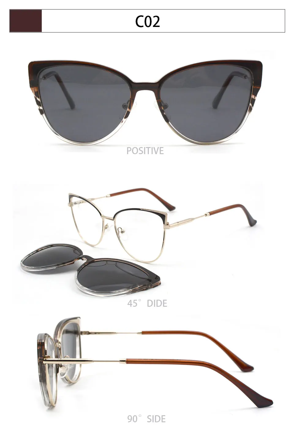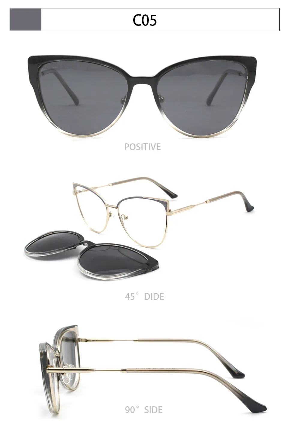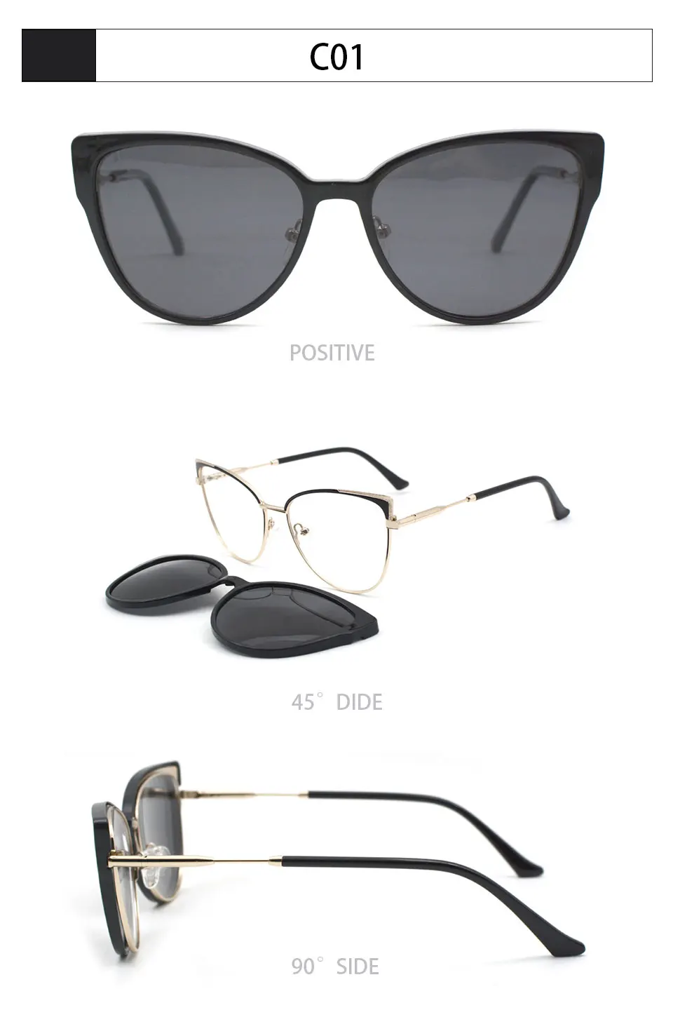 KANDREA Vintage 2 In 1 Clip On Glasses Frame Women Brand Design Polarized Sunglasses Optical Prescription Eyeglasses FNA017