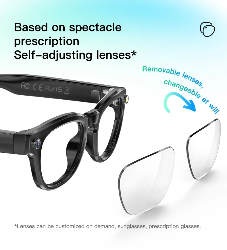 ❤ Our smart glasses support changing lenses. It is recommended to go to the offline glasses store to change the lenses. Not recommended to operate it by yourself.