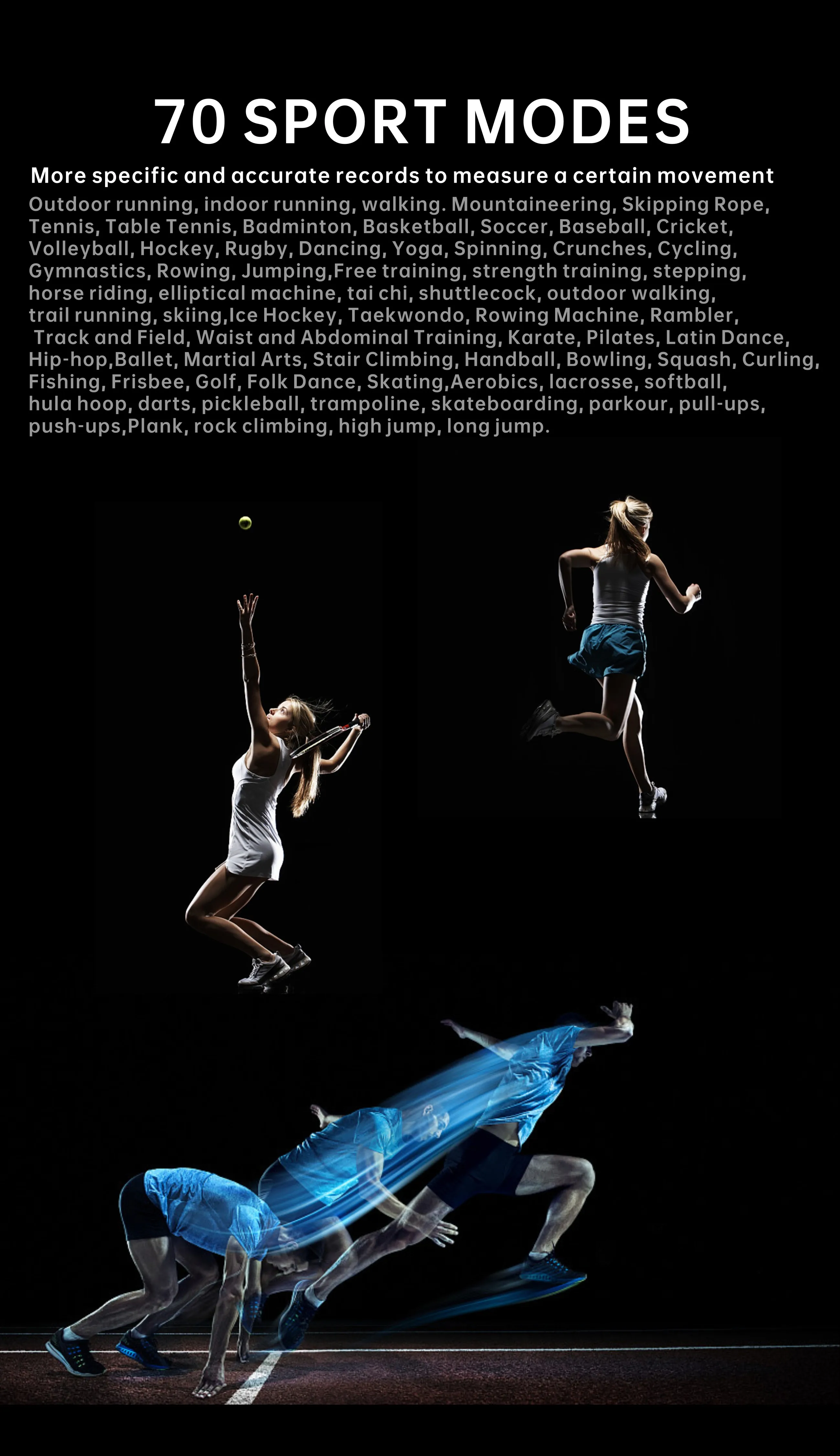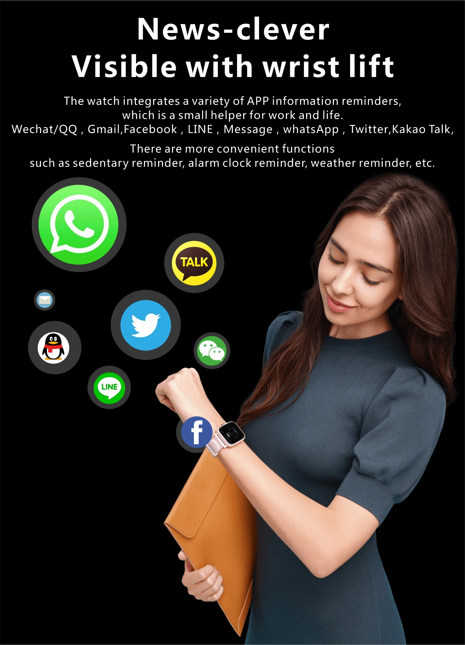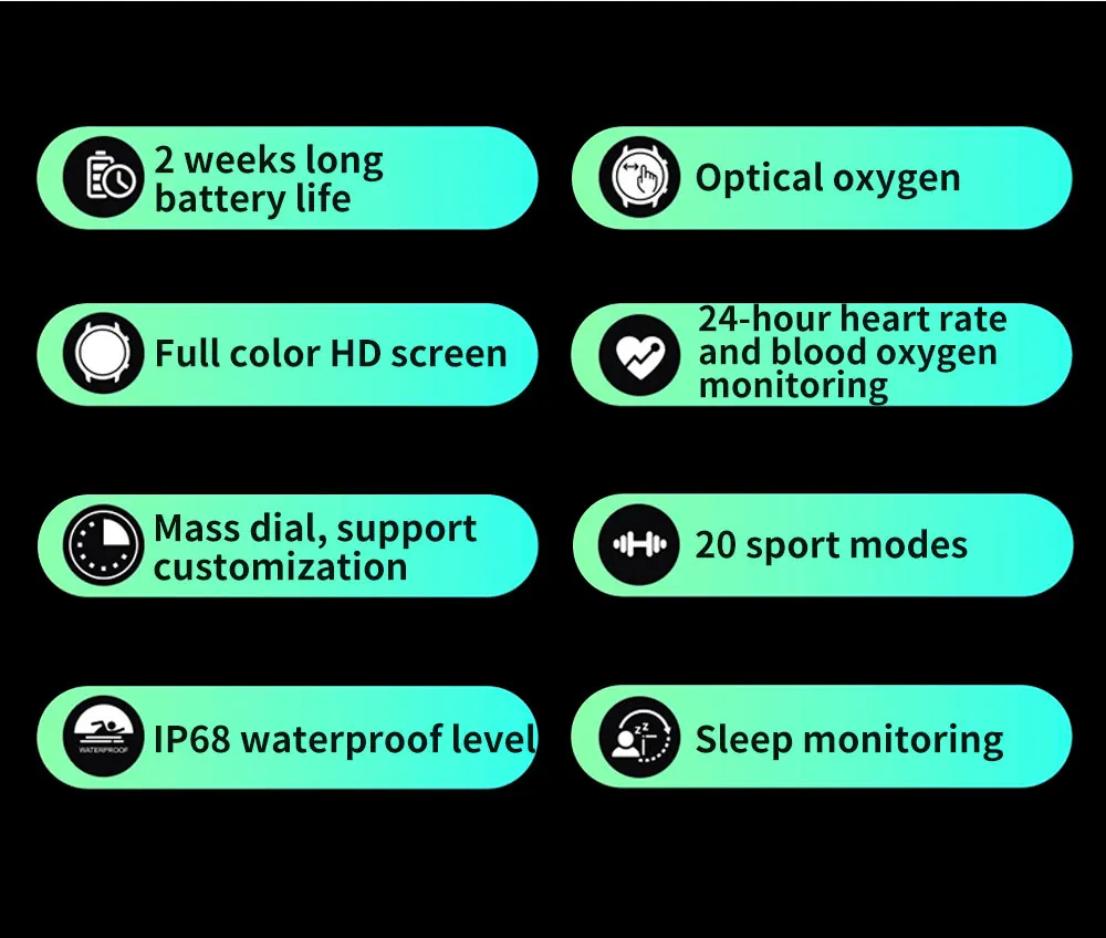 Function: Passometer,fitness tracker,sleep tracker,Message Reminder,Call Reminder,Answer Call,Dial Call,REMOTE CONTROL,Push Message,24 hour instruction,Chronograph,Alarm Clock,World Time,Calorie Counter,Multiple Time Zone,week,Month,Heart Rate Tracker,Interactive Music,Calendar