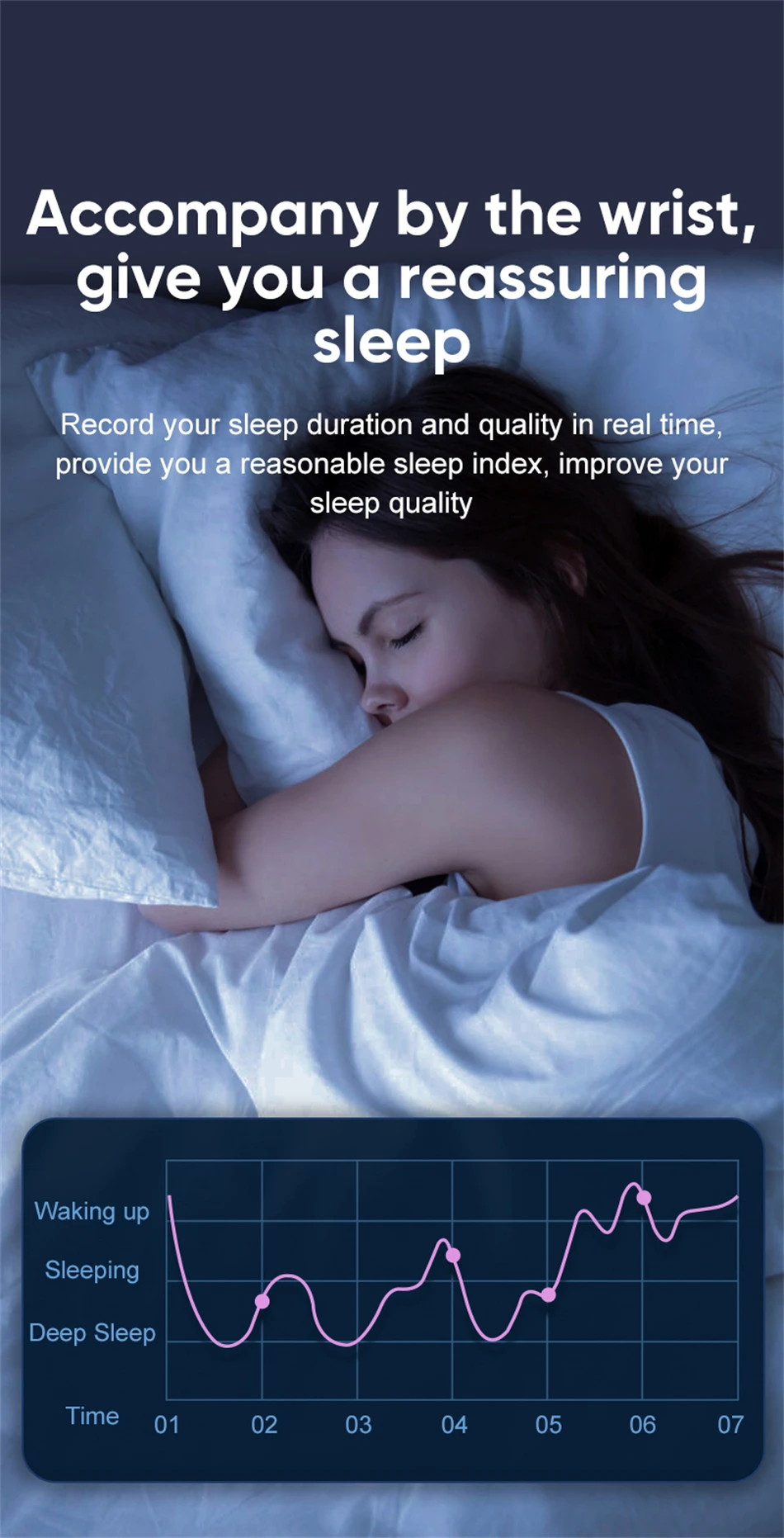 5、 Health management: HR, SPo2, BP, Sleep tracking