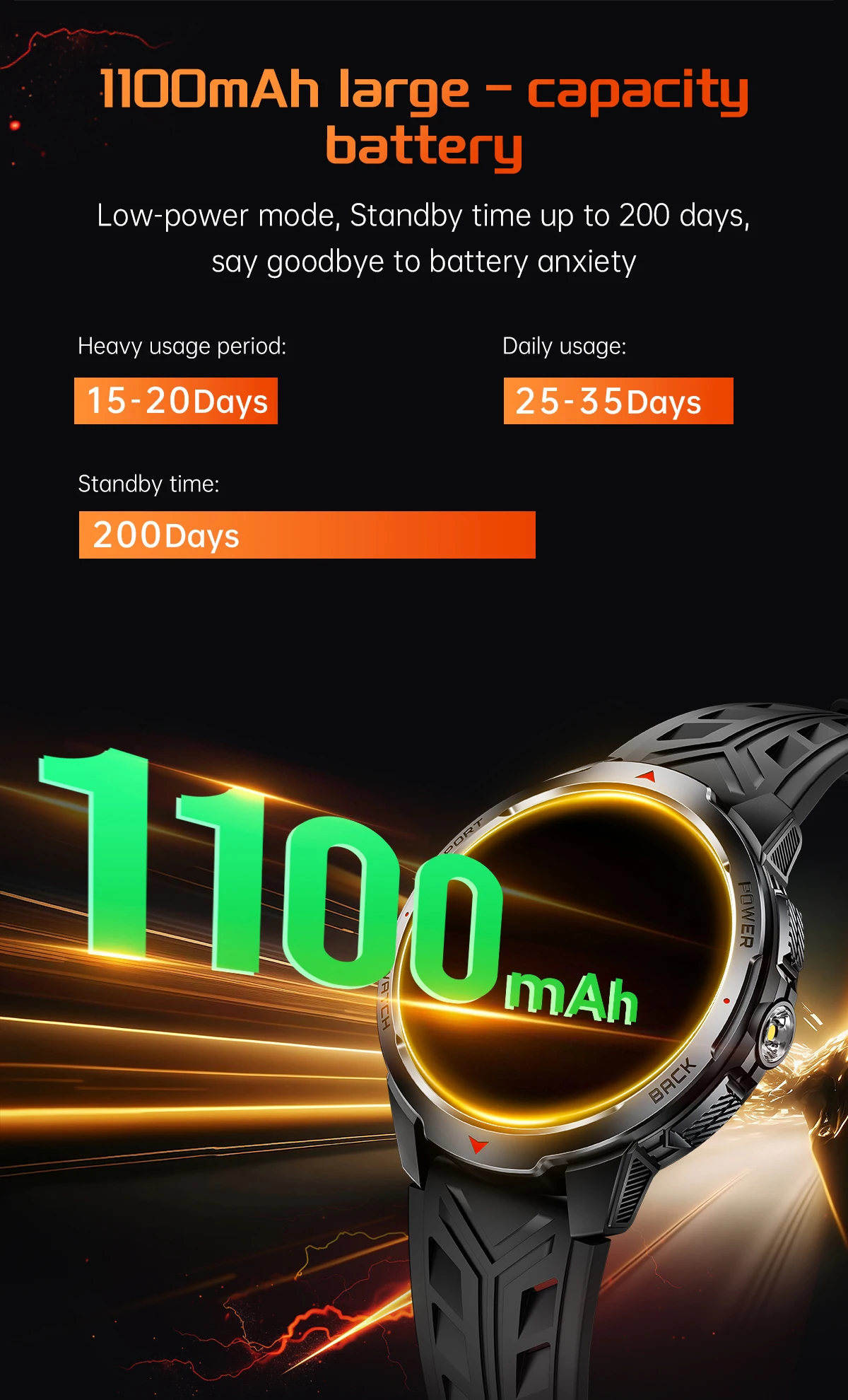 LIGE New 1100mAh Large Capacity Battery Smart Watch Men Sports LED Flashlight Compass 3ATM Waterproof Bluetooth Call Smartwatch