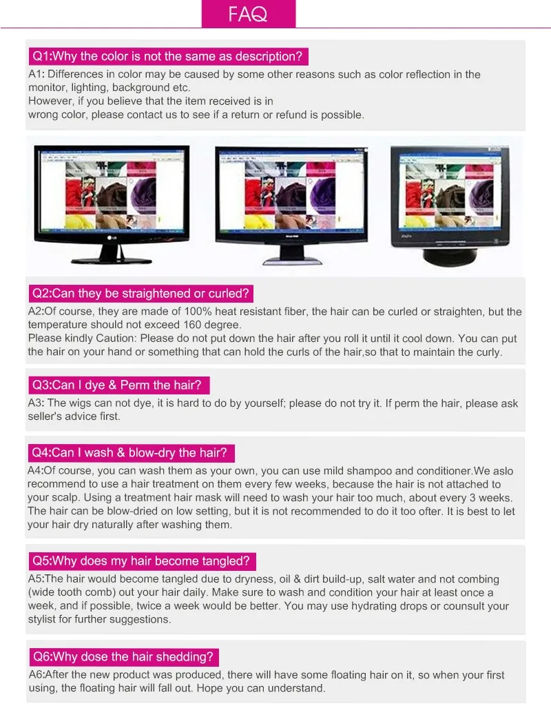 Material:High quality heat resistant(160C) synthetic fiber