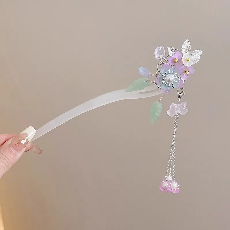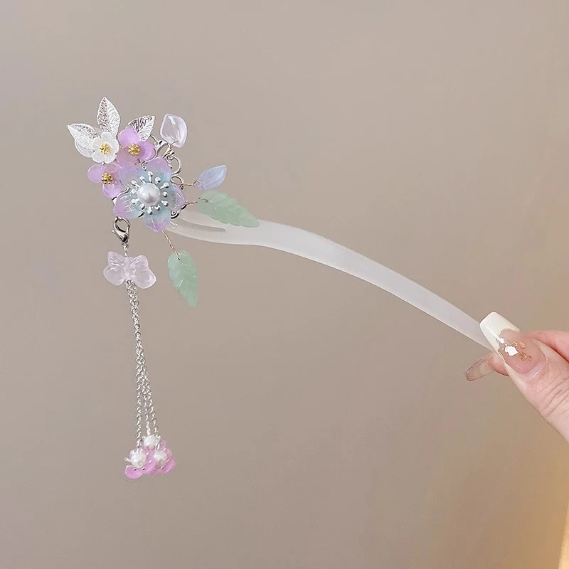 Light Luxury Flower Hairpin For Women Chinese Style Floral Butterfly Tassel Hair Stick Elegant Metal Jewelry Hairpin Hair Clips