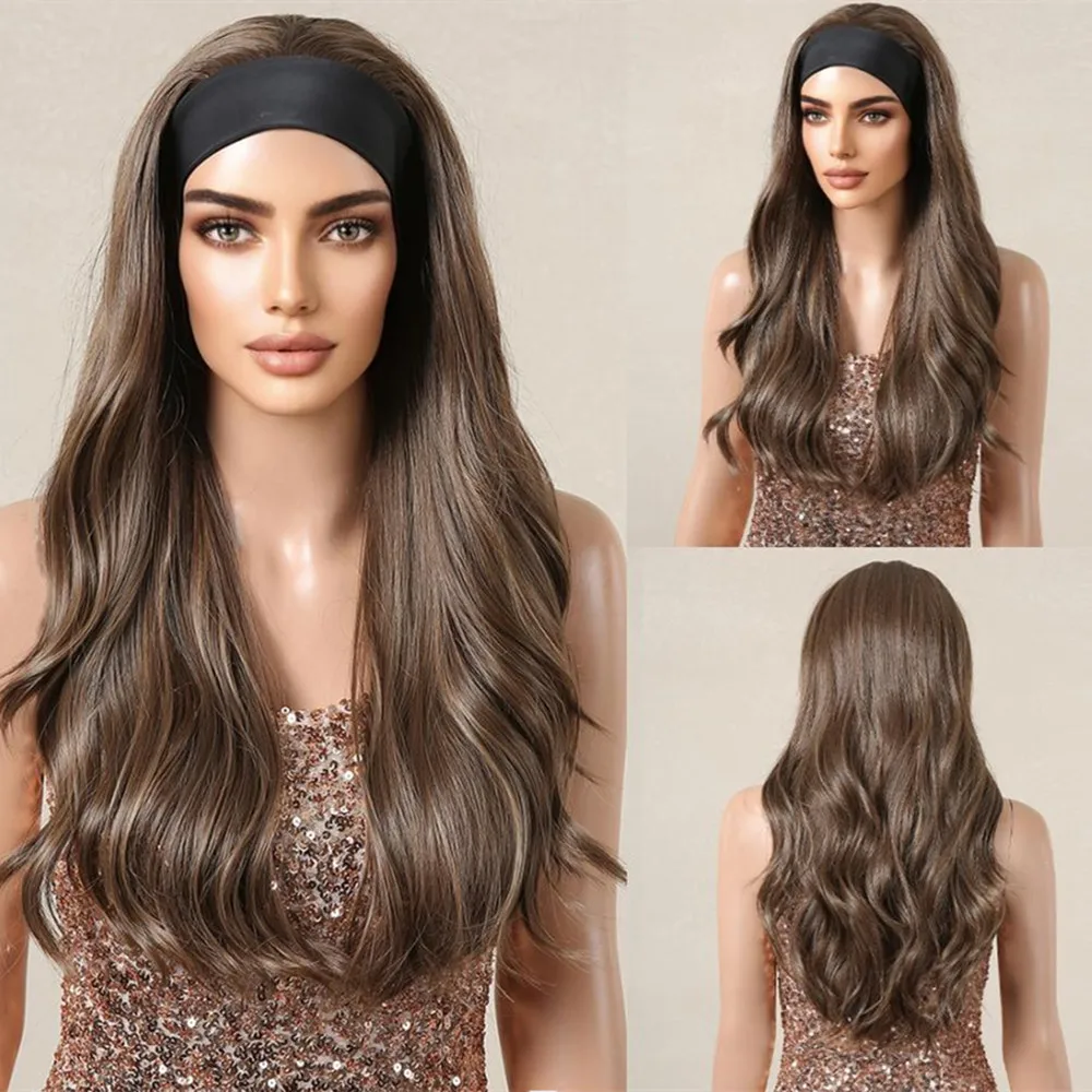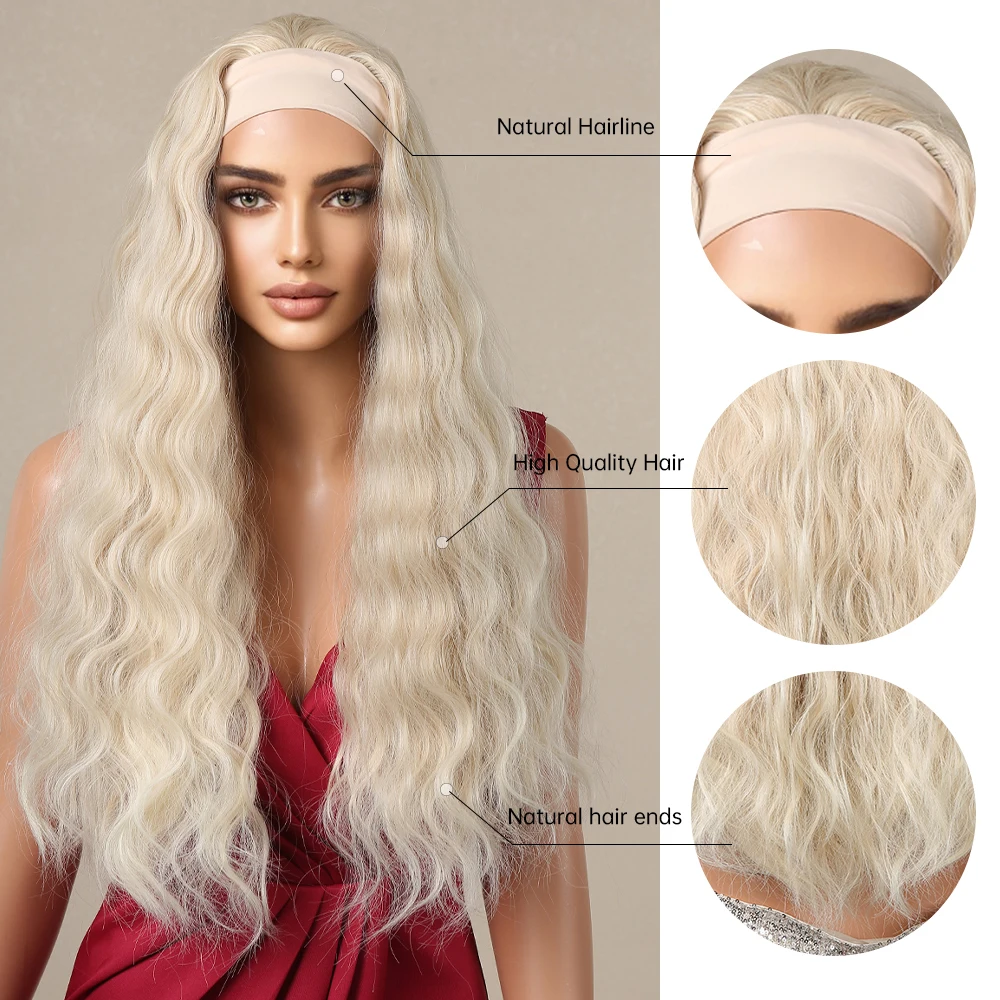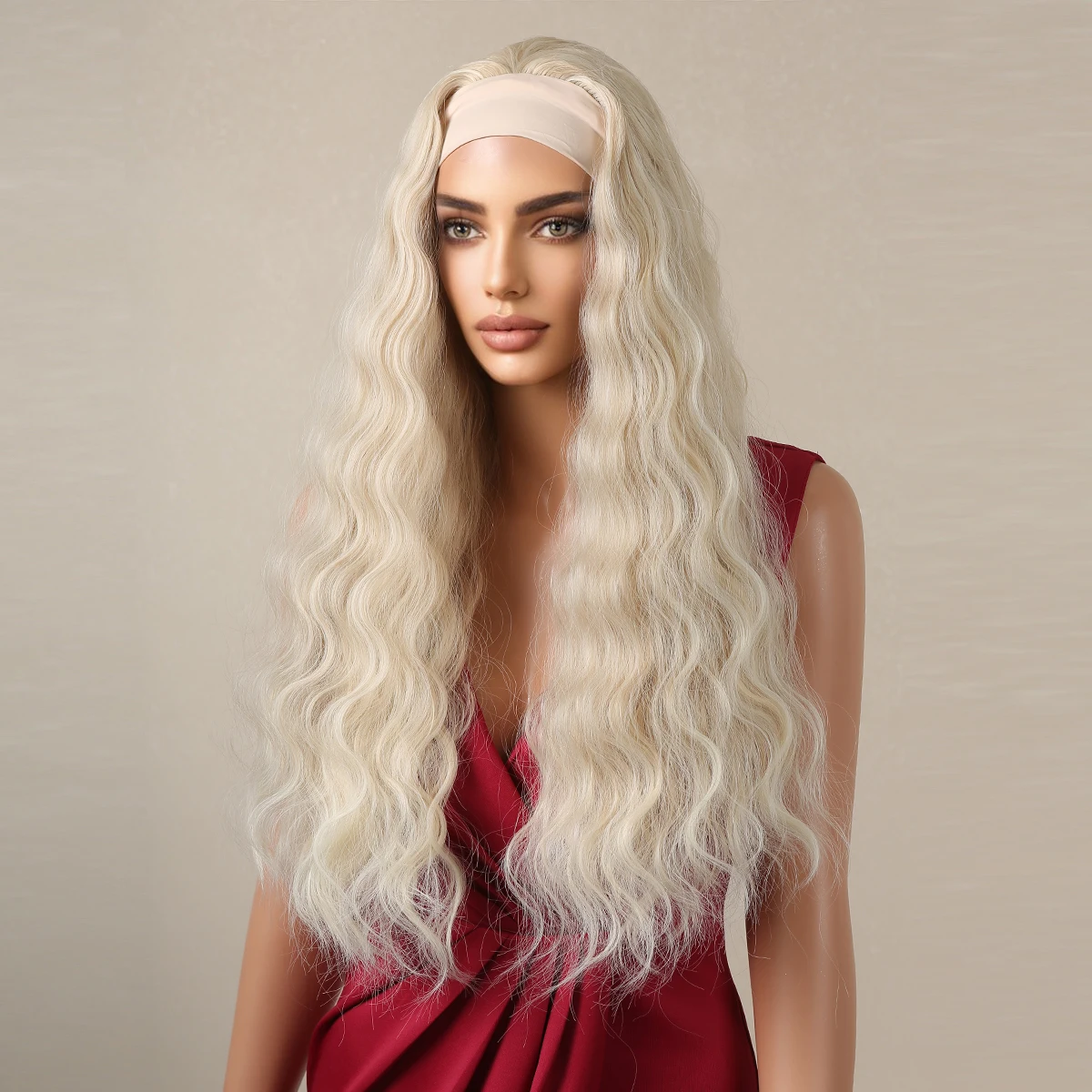 Long Curly Headband Synthetic Wigs Blonde Water Wavy Headband Wigs Bohemian Hair for Women Daily Party Use Heat-Resistant Fiber
