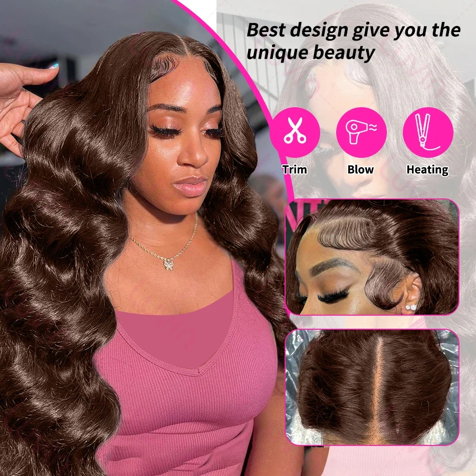 Luvin Brazilian Chocolate Brown Wig Body Wave Chocolate Brown Human Hair Wigs Body Wave Lace Front Wig 13x6 Brown Wig For Women