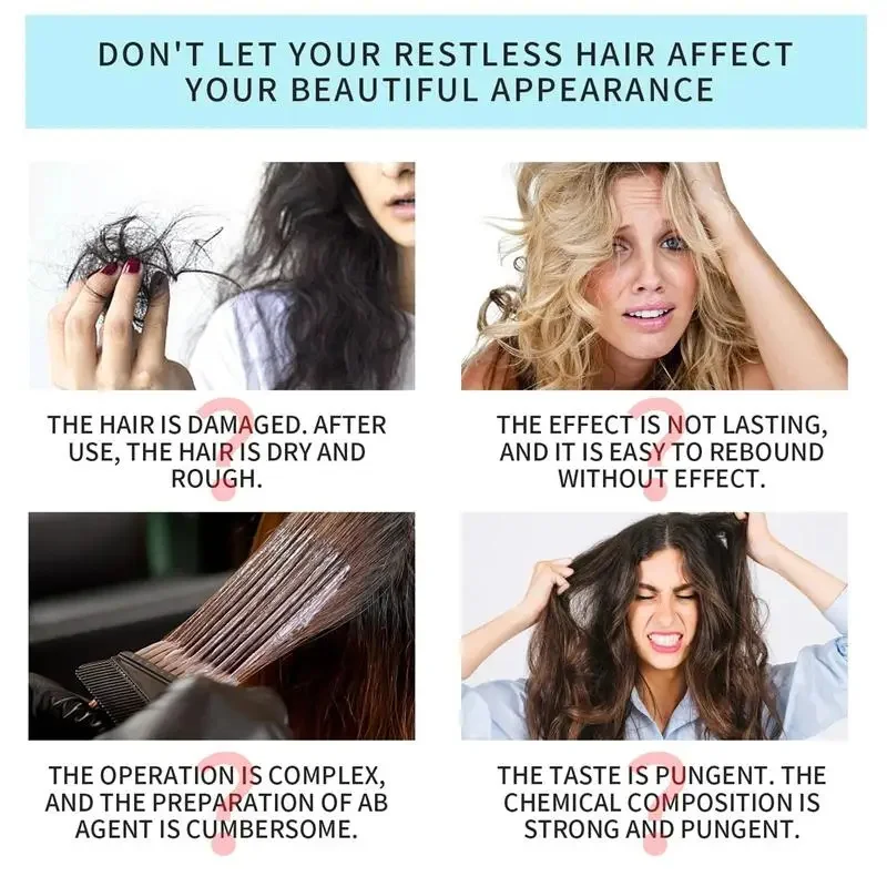 Effect: It can hydrate and moisturize fragile hair to awaken double the active energy. Make thin and fragile hair fluffy and smooth and Straighten after use.