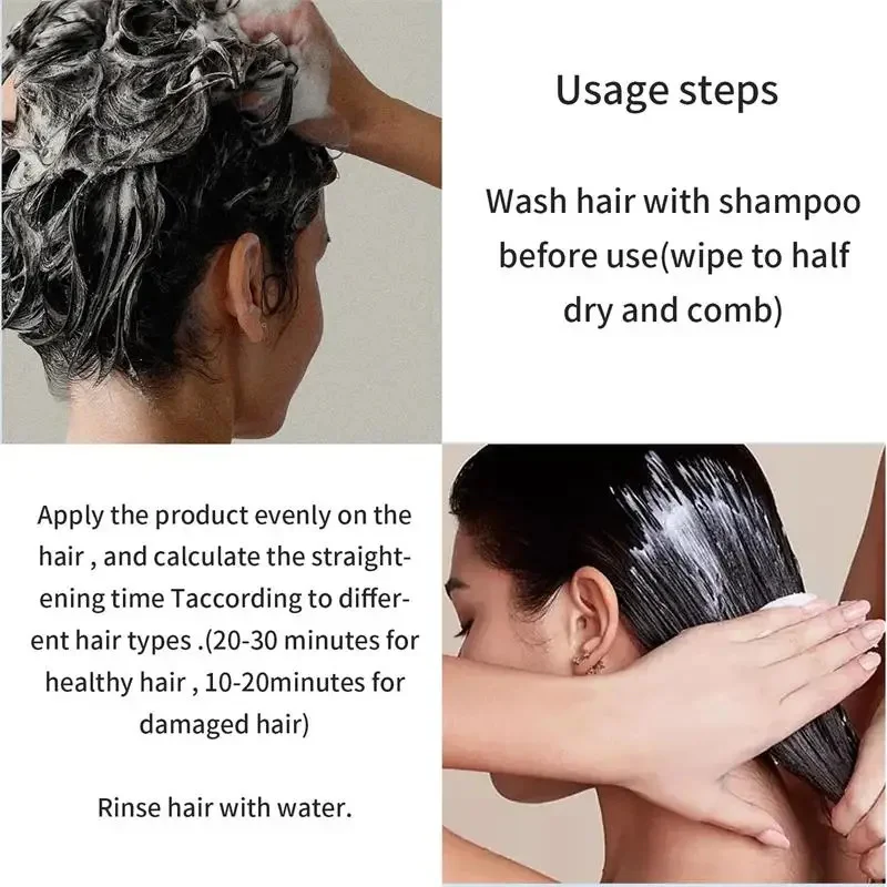 2 .Apply the product evenly on the hair , and calculate the straightening time Taccording to different hair types ( 20-30 minutes for health hair , 10-20 minutes for damaged hair
