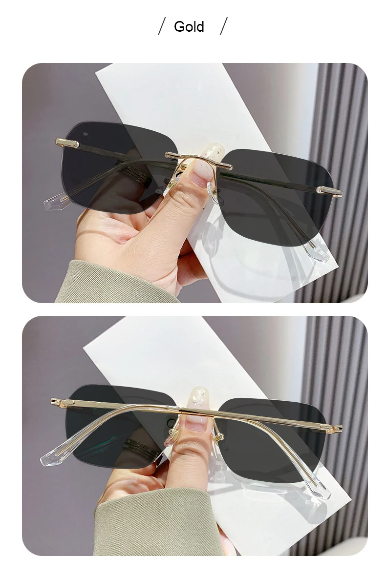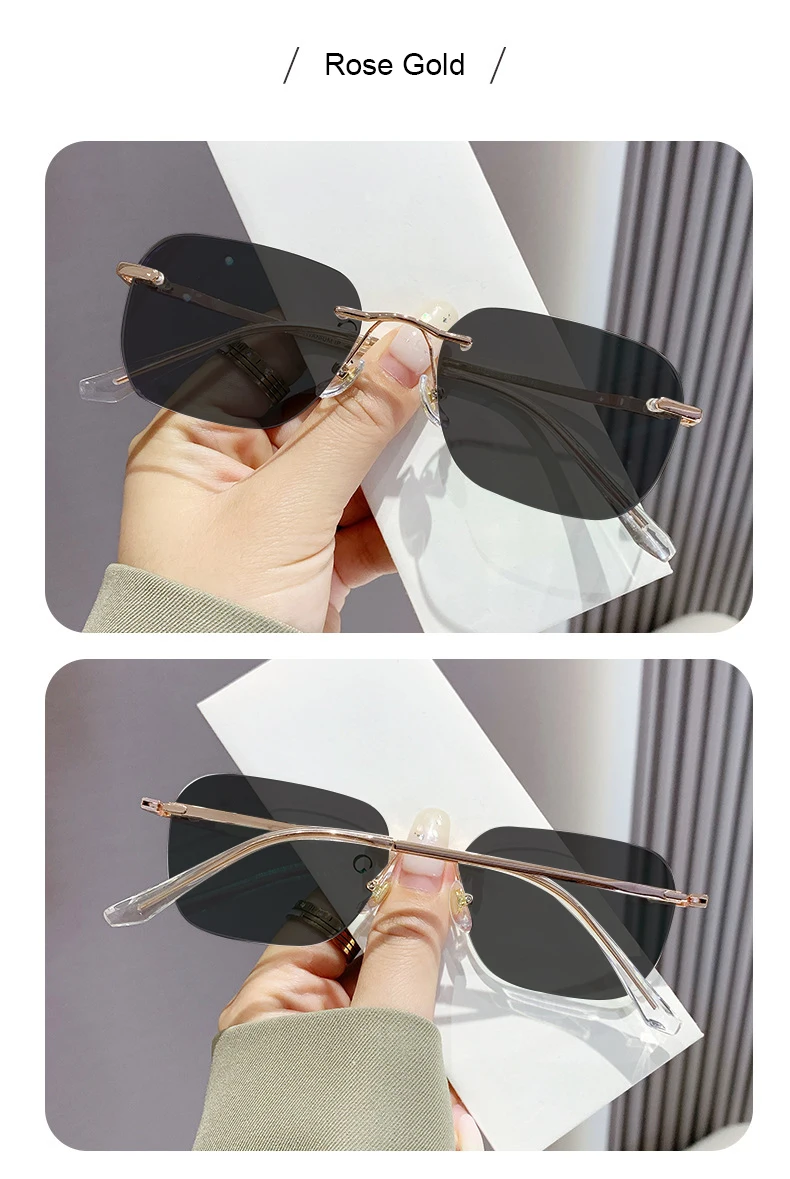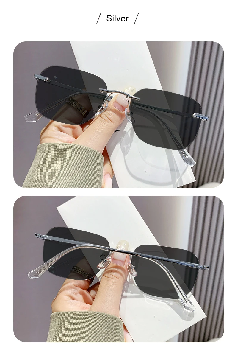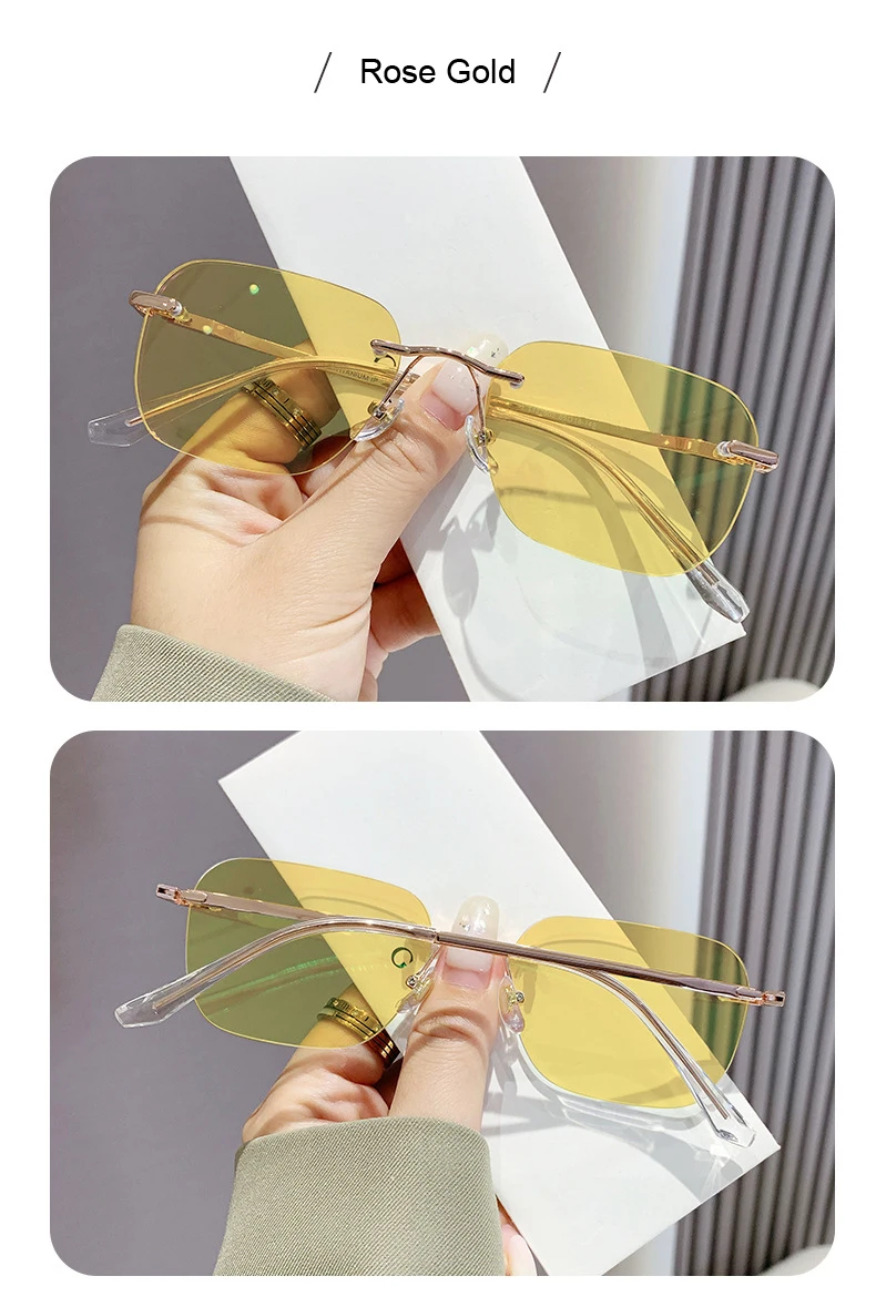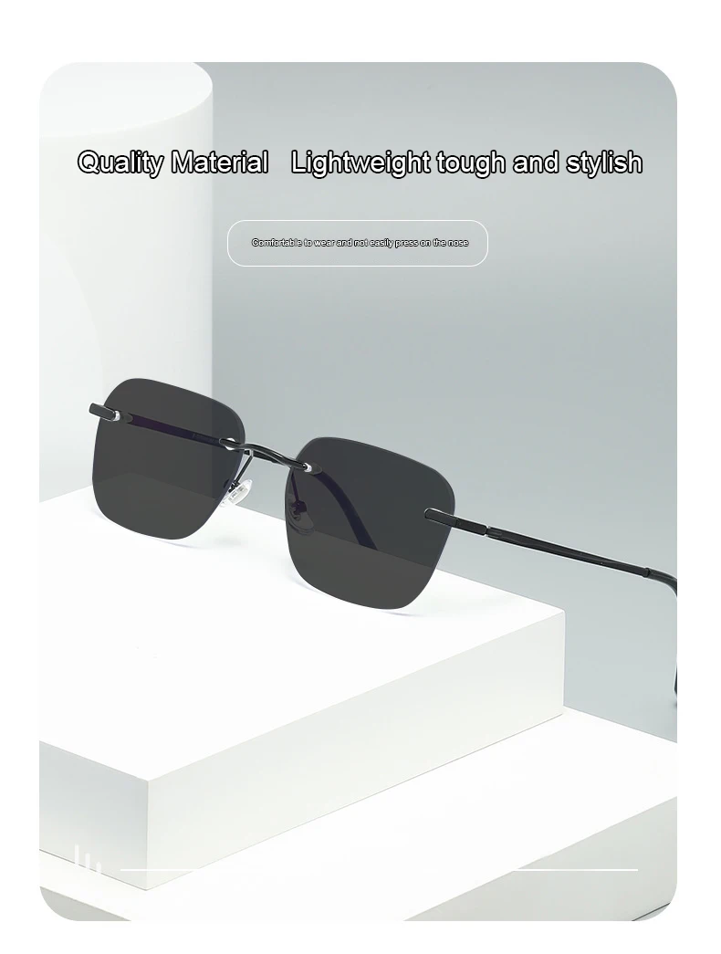Men Pure Titanium Rimless Sunglasses Women Polarized Sun Glasses Frameless Eyeglasses Night Driving Goggles Anti UV400 Eyewear