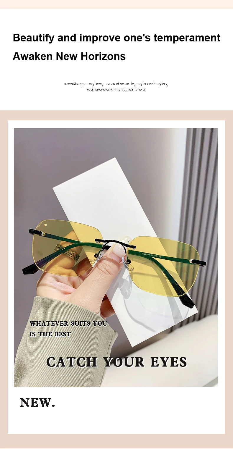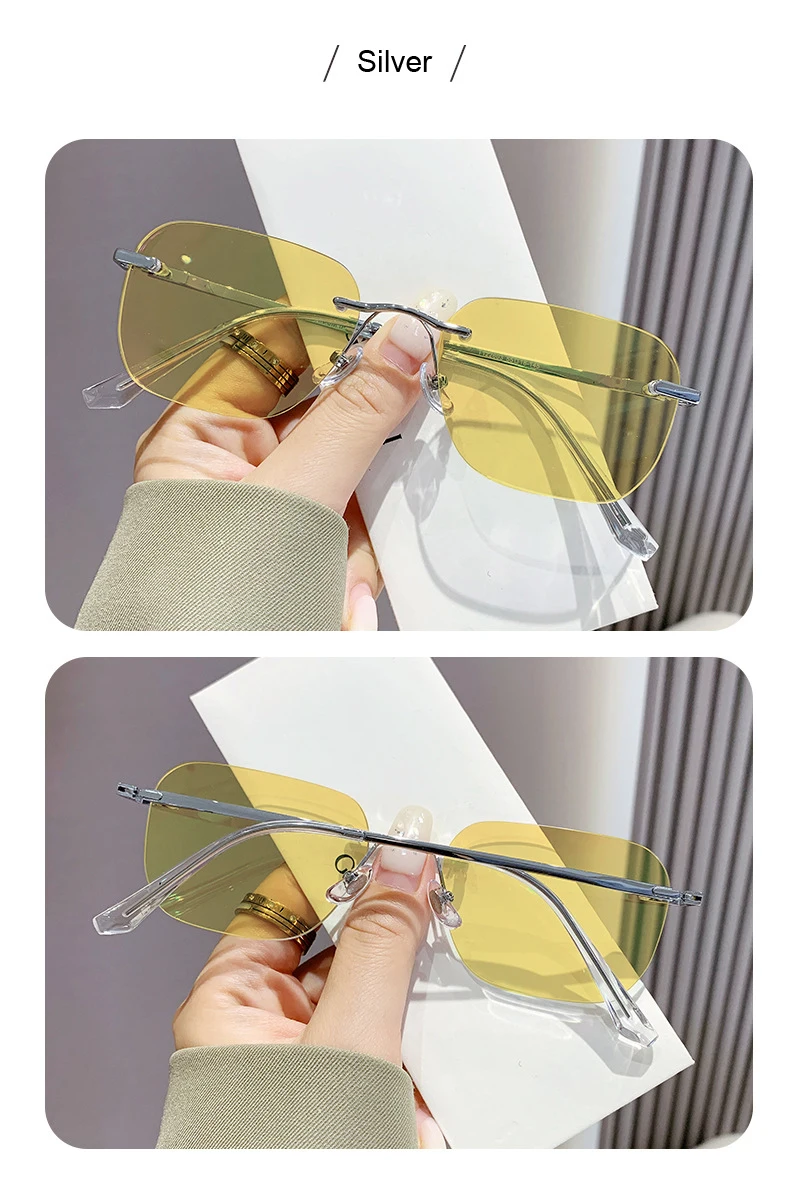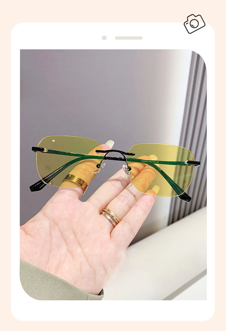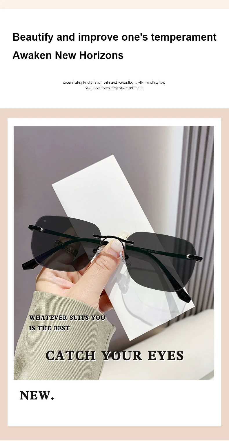 Men Pure Titanium Rimless Sunglasses Women Polarized Sun Glasses Frameless Eyeglasses Night Driving Goggles Anti UV400 Eyewear
