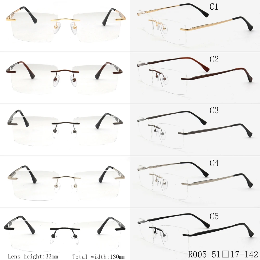 Men Rectangular Rimless Eyeglass Frames for Men Square Business Metal Optical Glasses Frames Light Spectacles Gold Silver Black