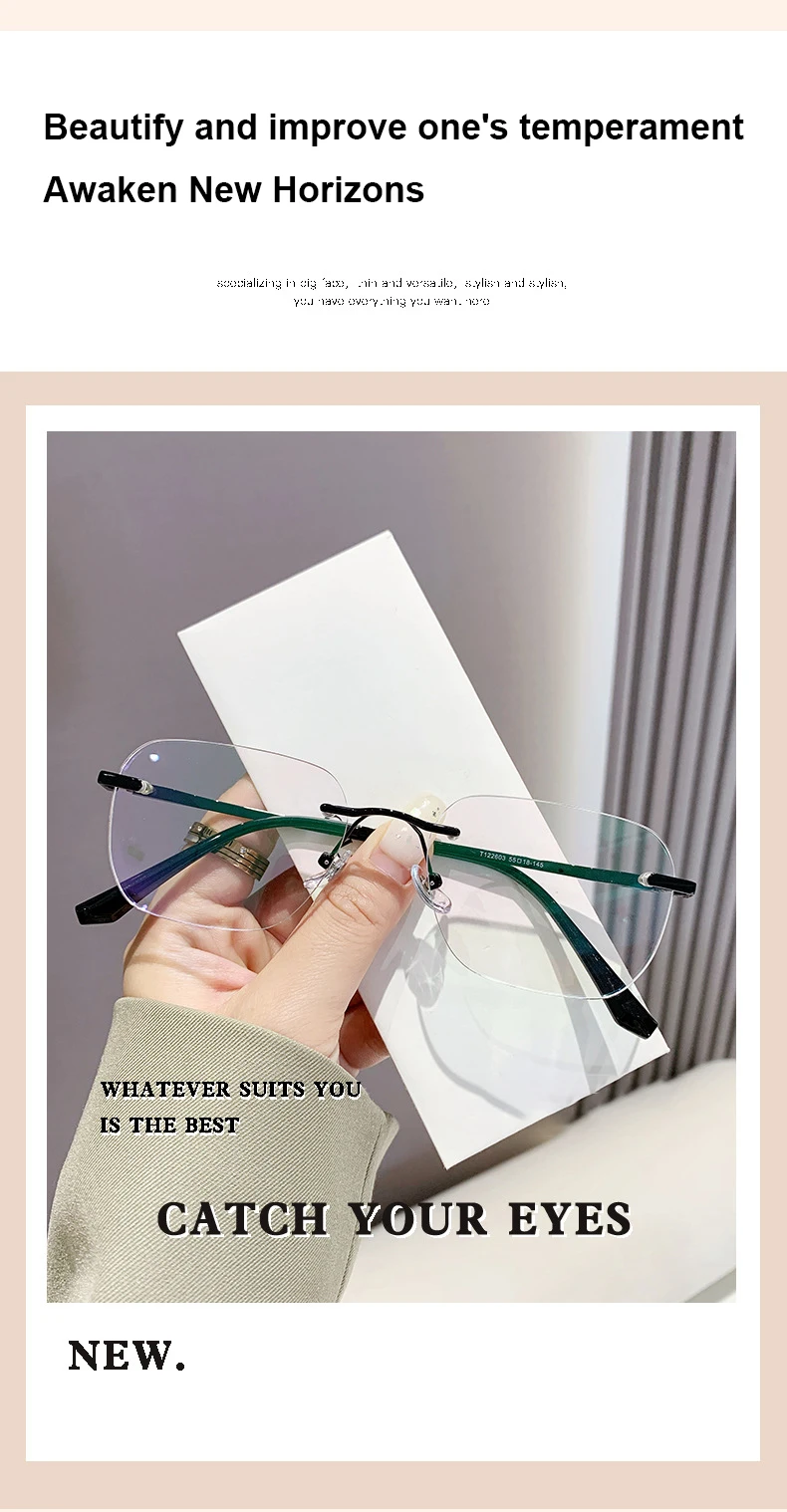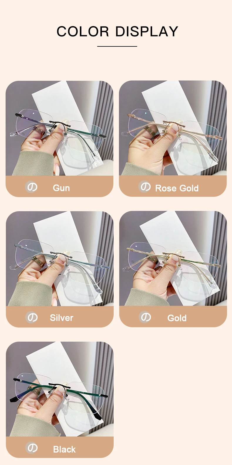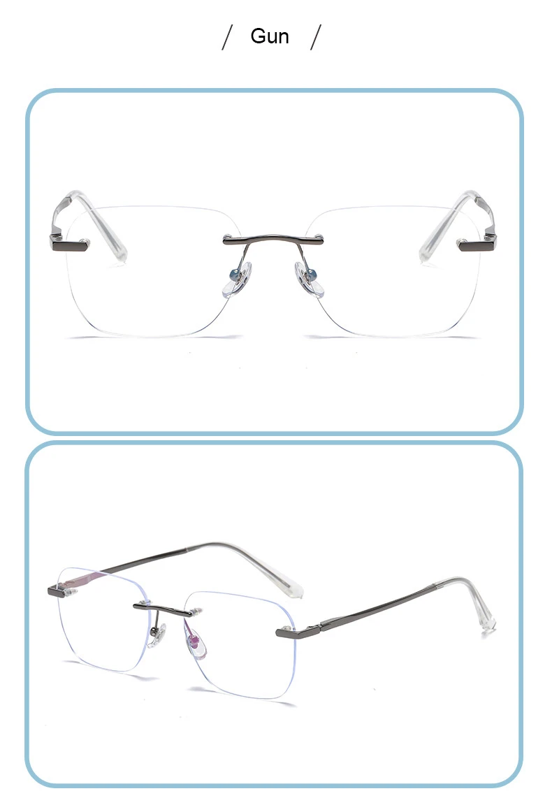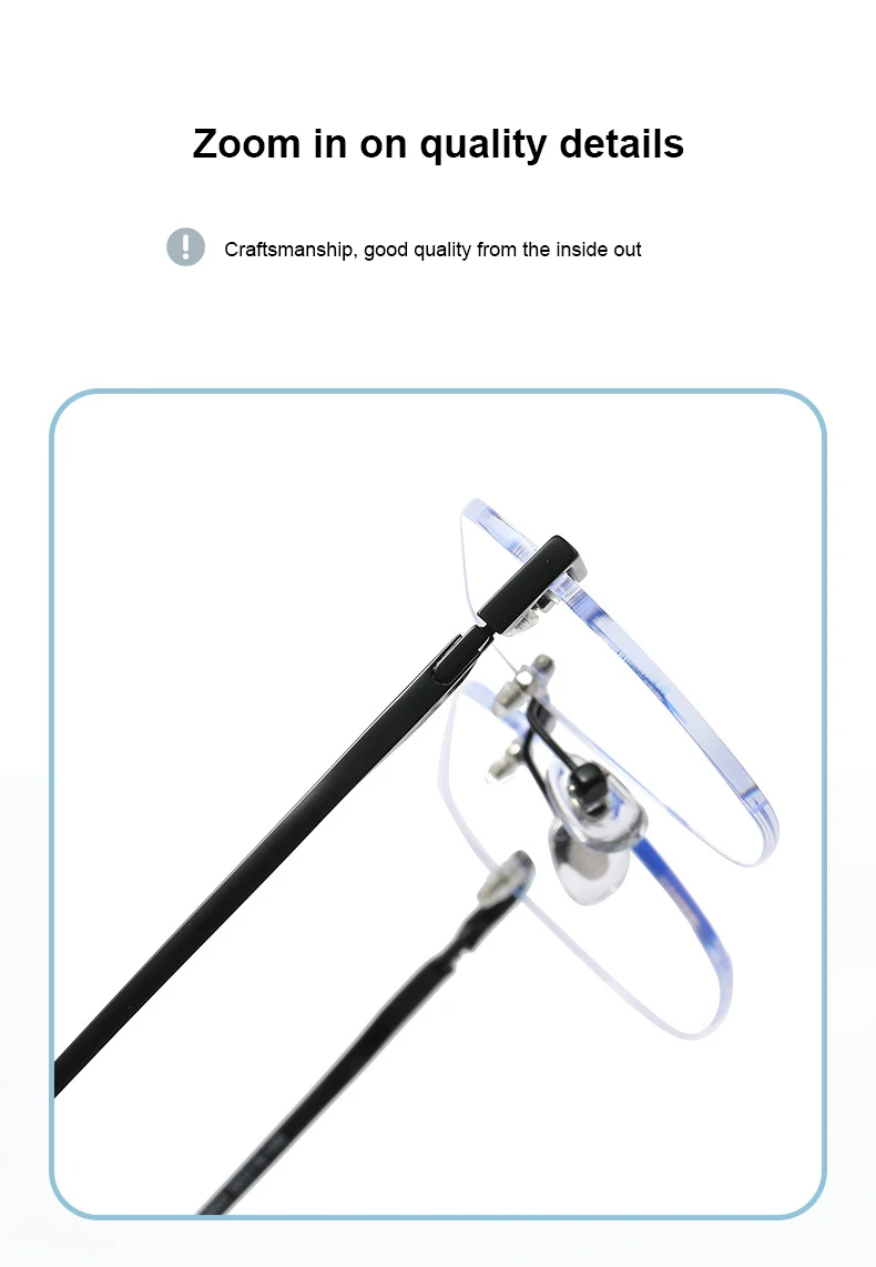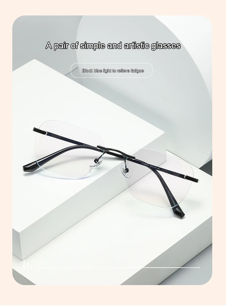 Men Titanium Rimless Eyeglasses Frame Blue Light Blocking Glasses Women Anti Fatigue Lenses Prescription Myopia Reading Eyewear