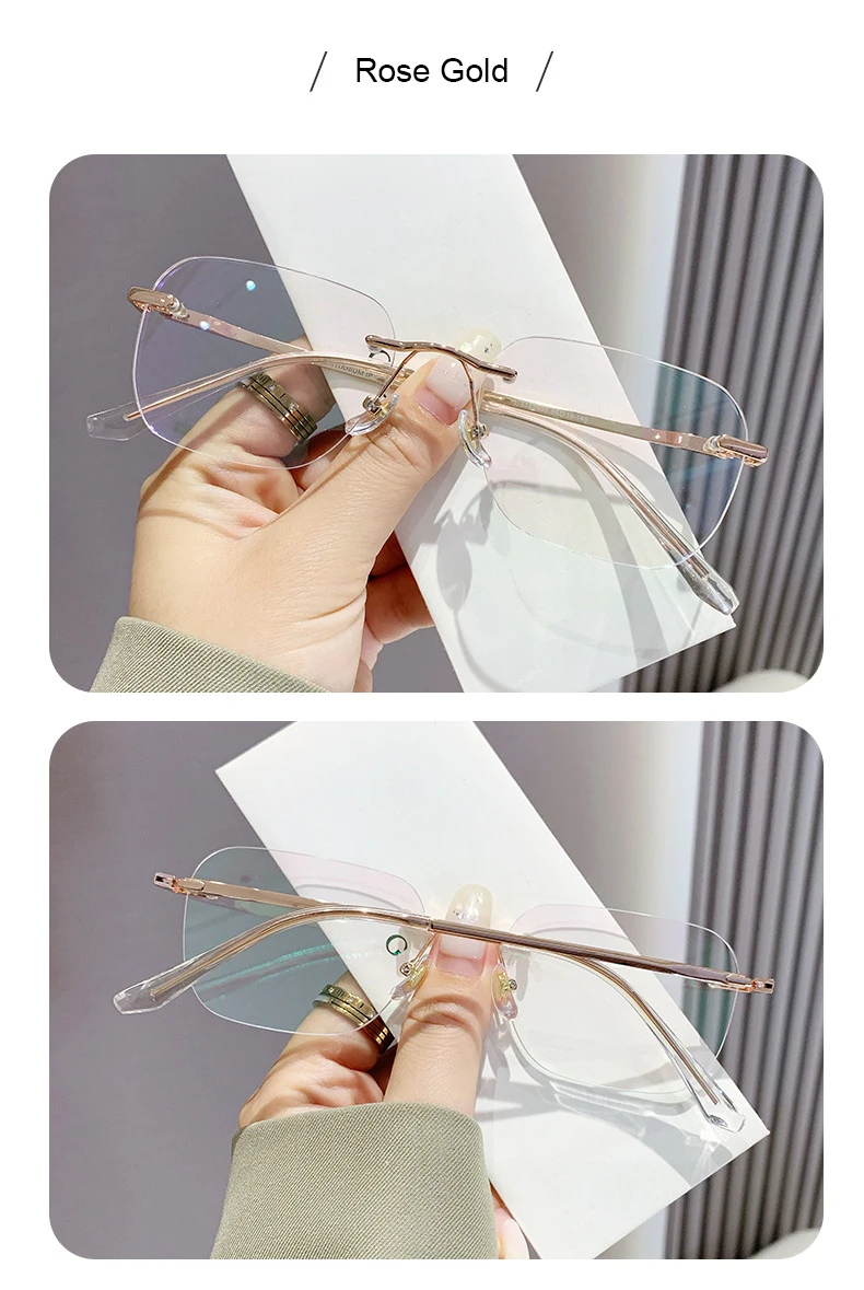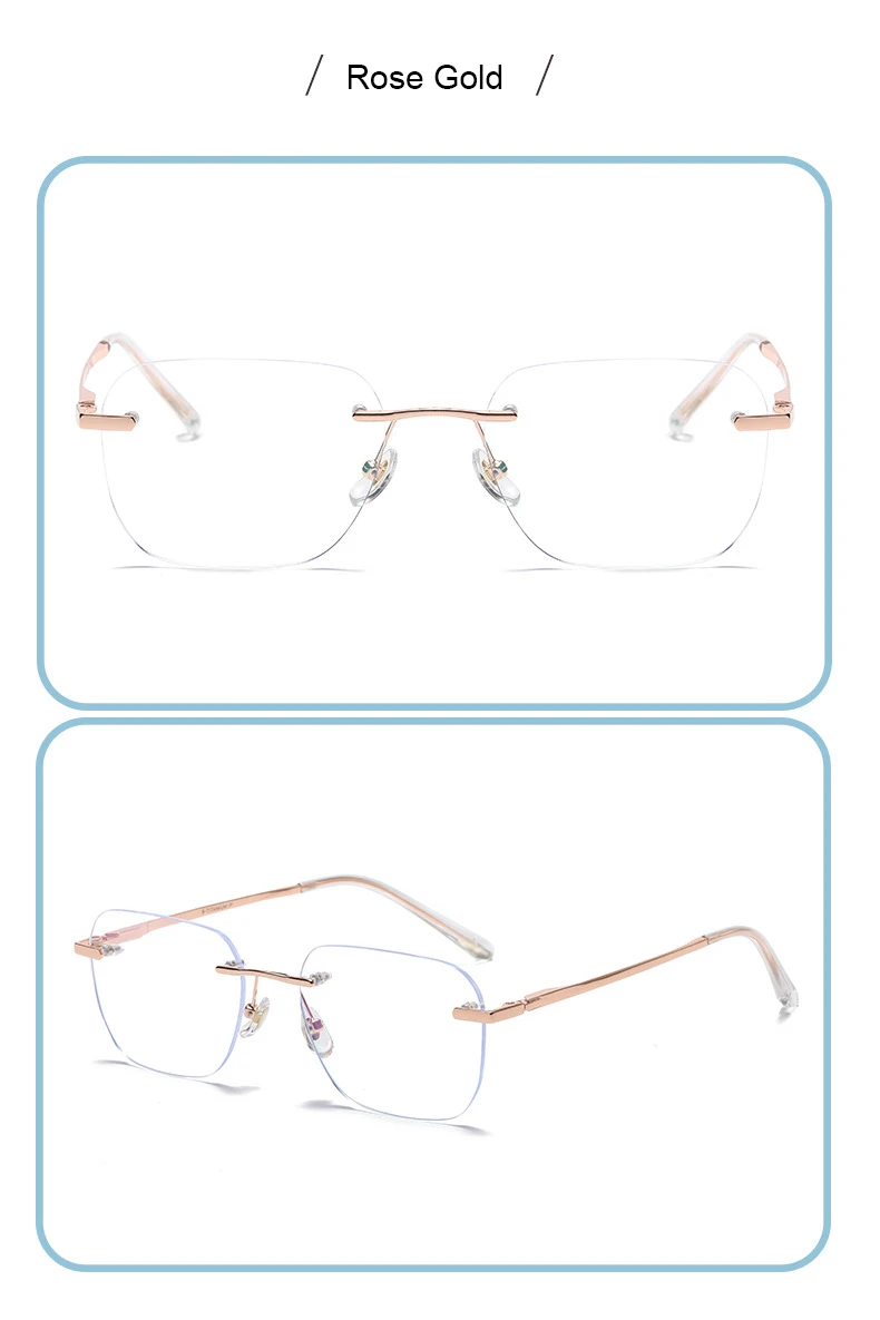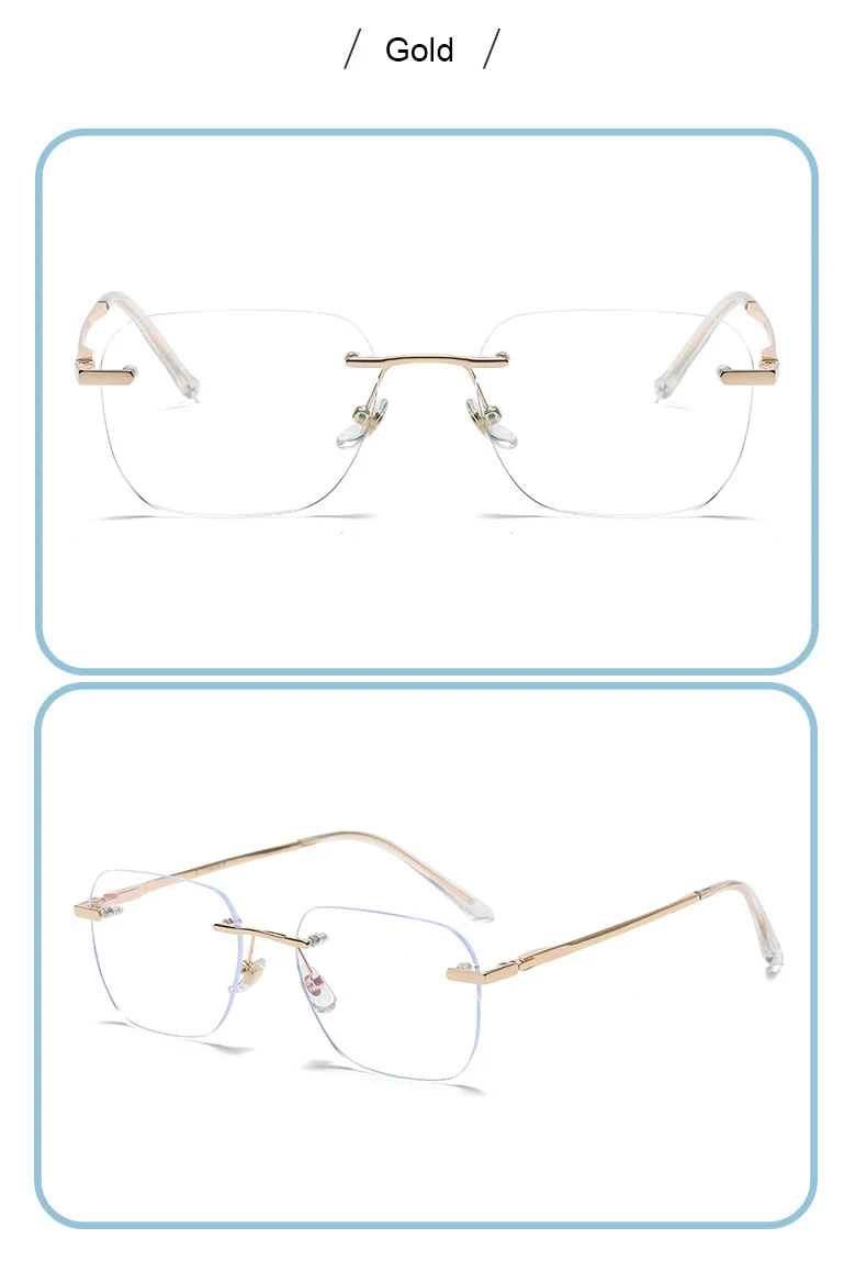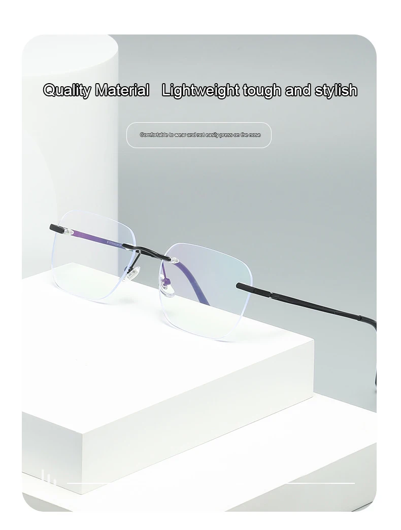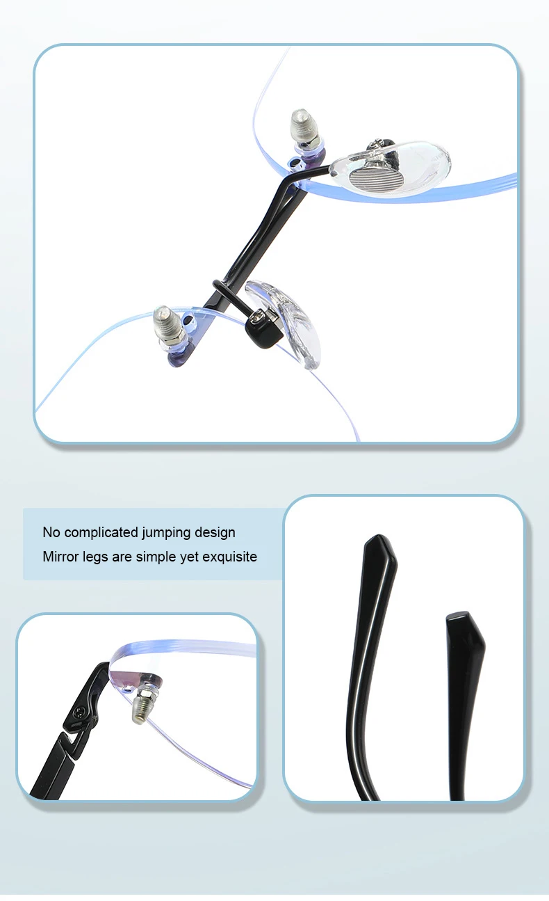 Men Titanium Rimless Eyeglasses Frame Blue Light Blocking Lenses Women Anti Fatigue Glasses Prescription Myopia Reading Eyewear