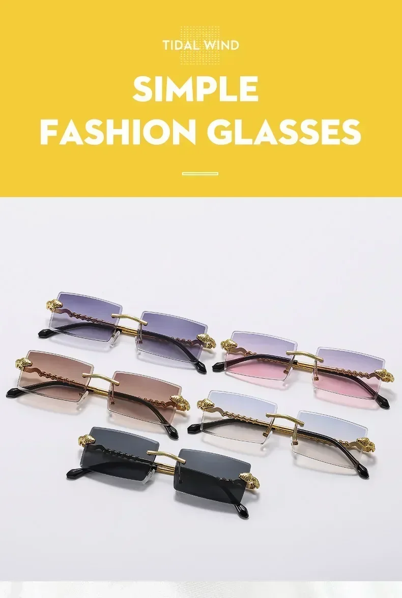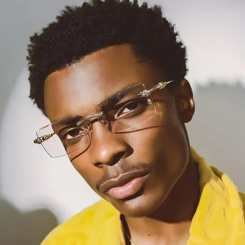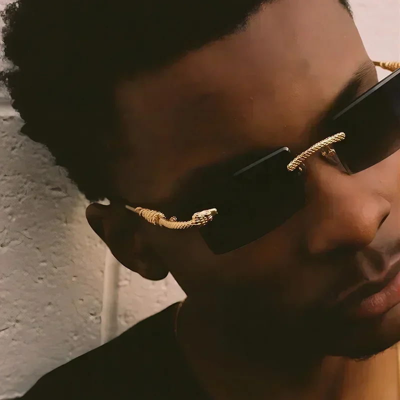 Metal Square Cut Edge Snake Frame Sunglasses for Men Fashion Frameless Personalized Glasses Trendy Retro Ocean Film Sunglasses