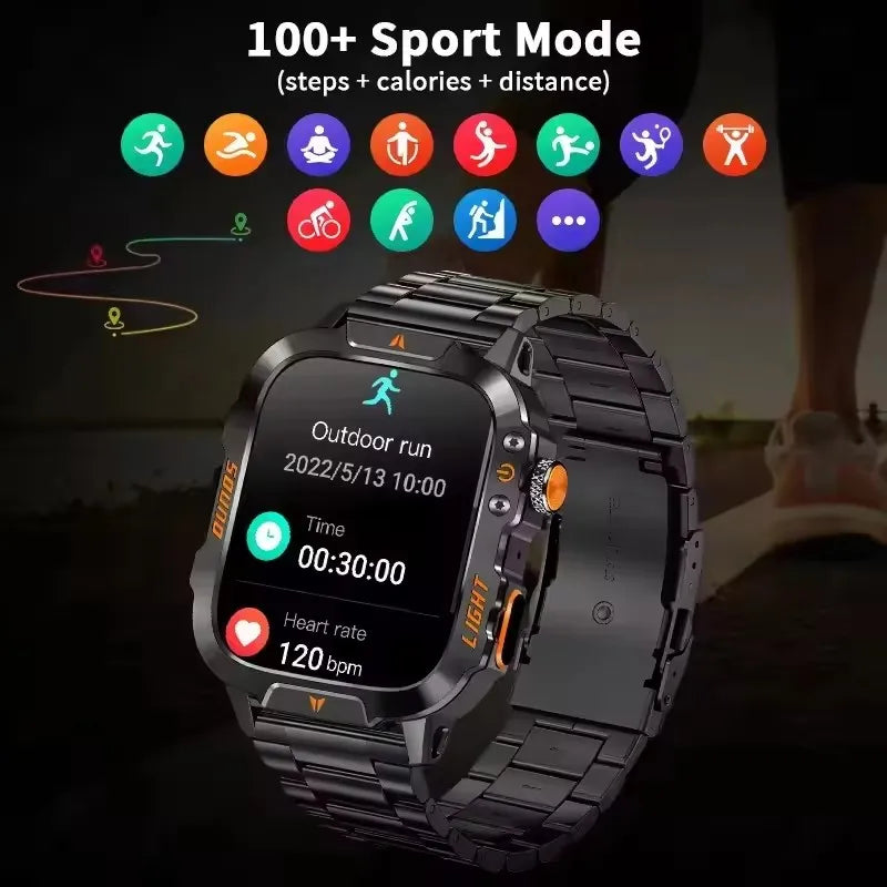 Military Smart Watch Men Waterproof Outdoor Sport Tracker LED Flashlight Bluetooth Call Men Smartwatch Android iOS