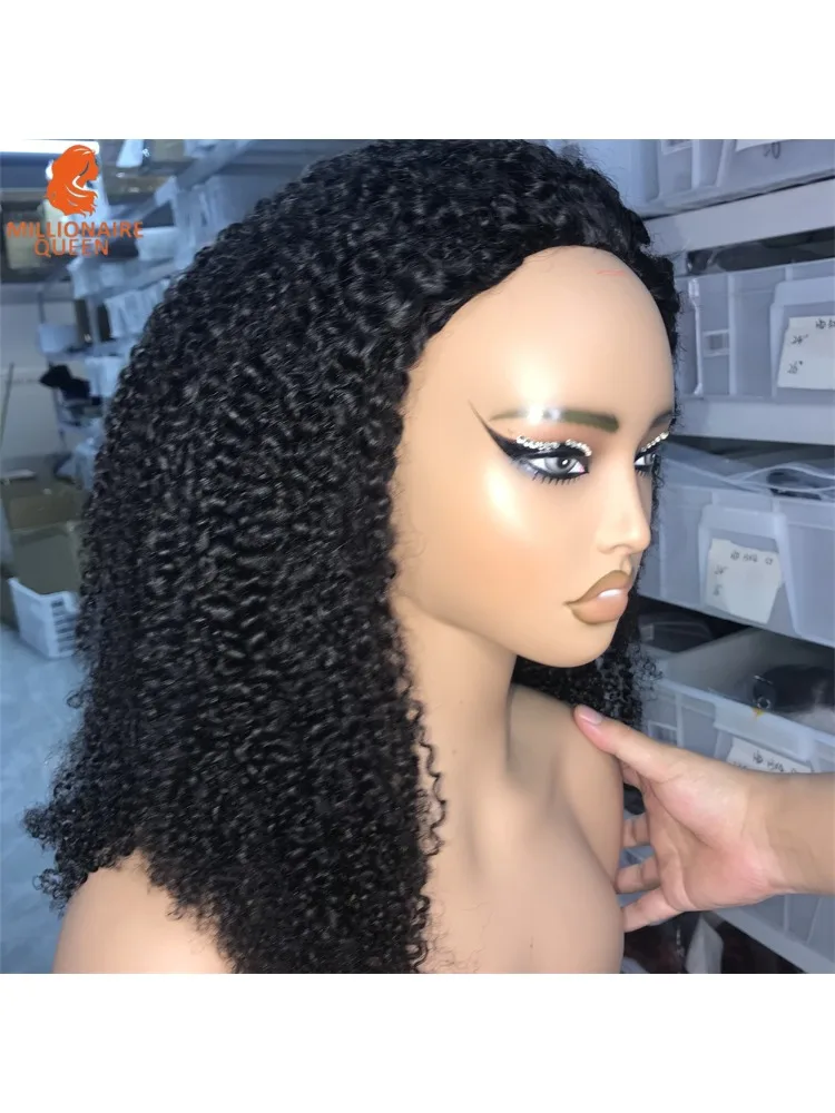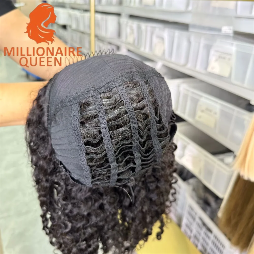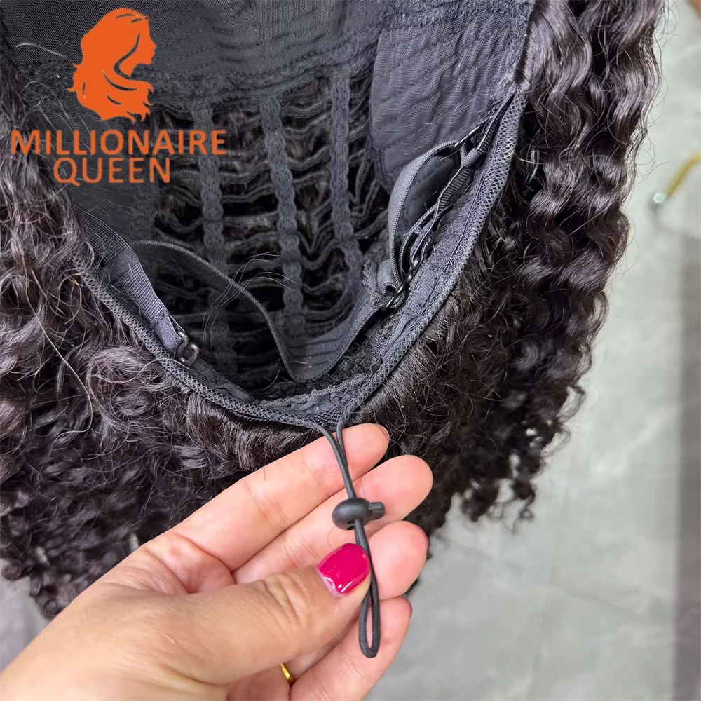 Millionaire Queen Half Wig Glueless Burmese Pixi Curly 100% Human Hair With Drawstring Seamless Clips Half Wigs 300 Density