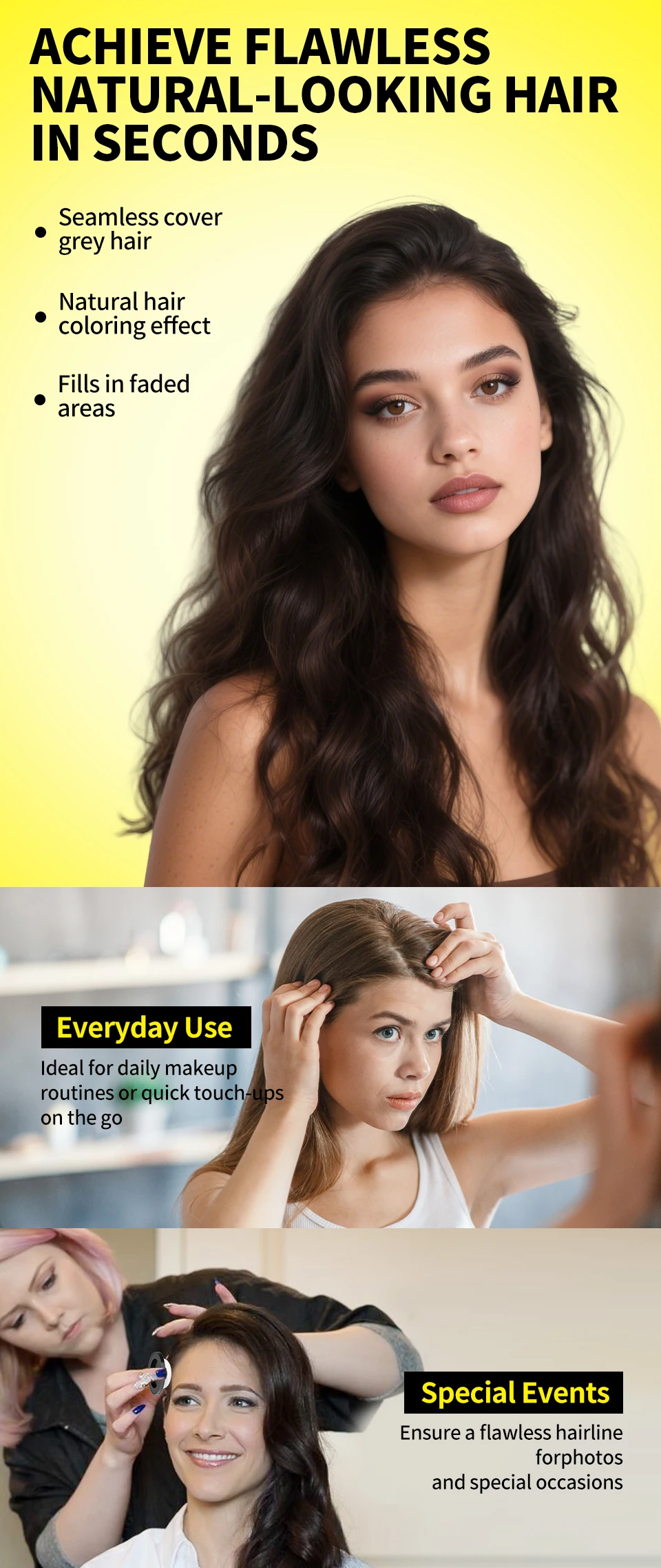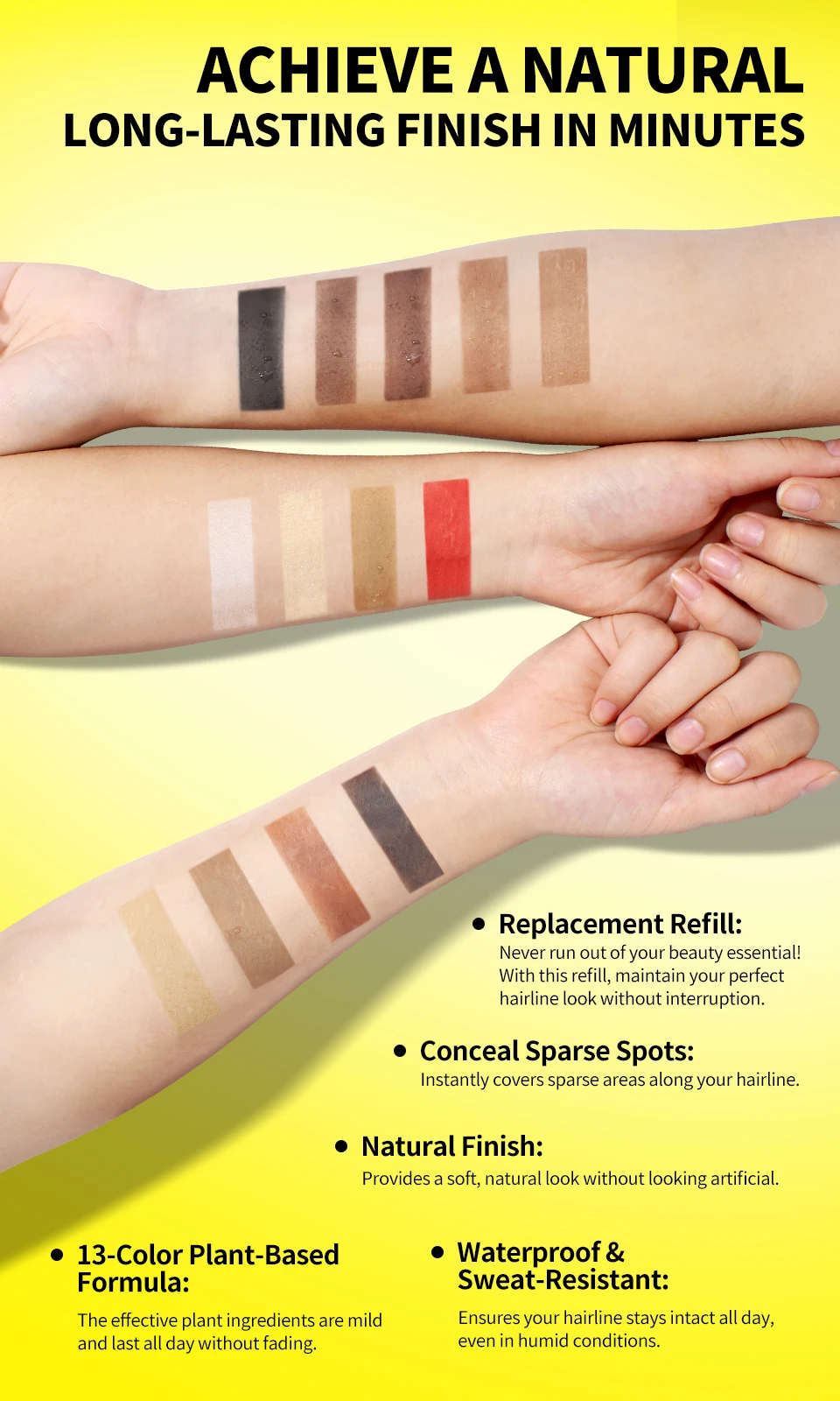 Mini Hairline Shadow Powder Waterproof Instant Hairline Powder Black Root Cover Up Hair Concealer Double Ended Makeup Brush