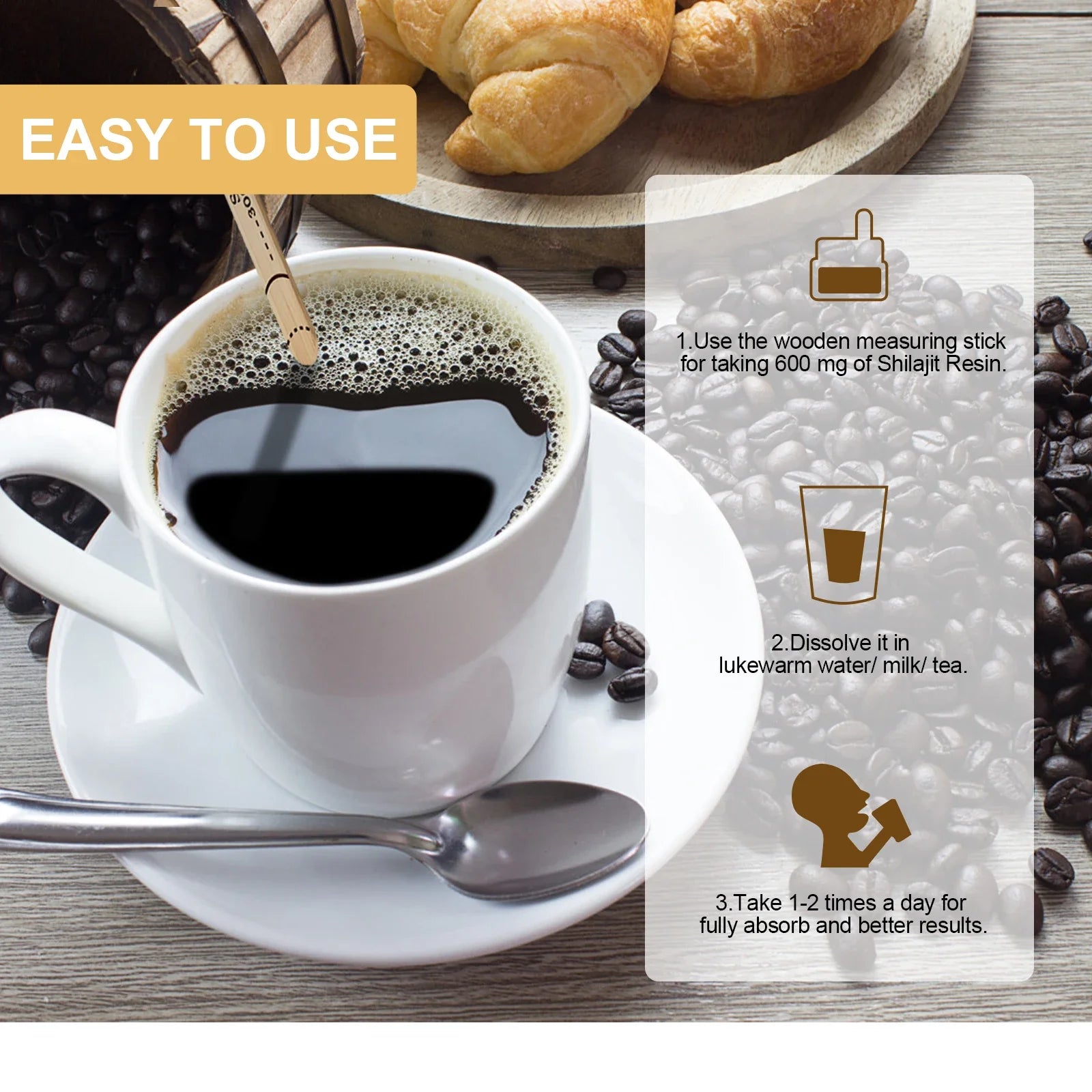 Feeling exhausted? Enjoy a surge in overall sensation and strength with Shilajit resin. Shilajit is made from gold-grade pure shiljiat resin. Unlike ordinary mineral supplements, shilajit's fulvic acid content improves mineral absorption, supporting your health such as immune system, energy levels, digestion and reducing fatigue - enjoy better overall quality of life.