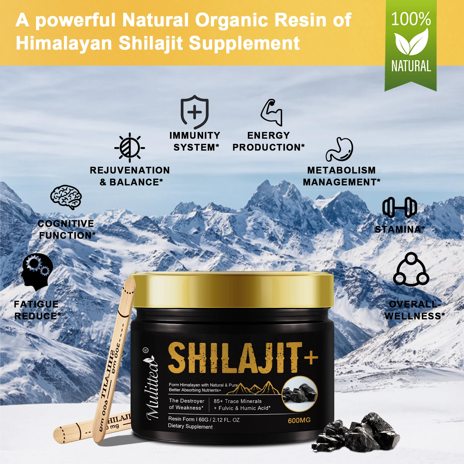 Mulittea High Purity Original Shilajit Mineral Supplements with 85+ Trace Minerals & Fulvic Acid for Man Energy Stamina