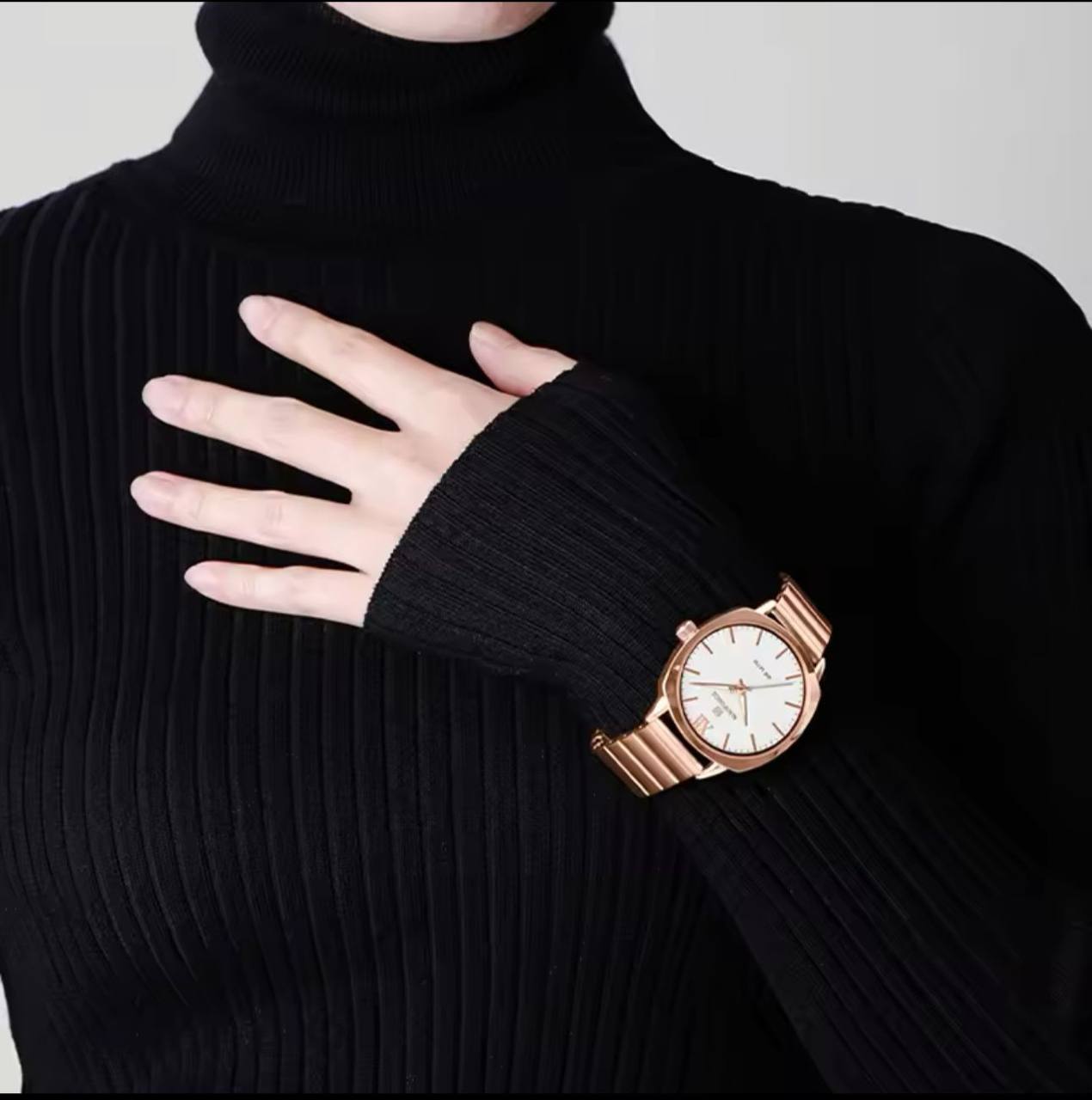 The NAVIFORCE NF5044 features a durable stainless steel case with a 38mm diameter, combining robustness and style. Its reliable quartz movement ensures precise timekeeping, while the 3ATM water resistance offers protection against everyday splashes. Packaged in an official NAVIFORCE branded box, this timepiece balances functionality with refined design, making it an excellent choice for both casual and professional wear.