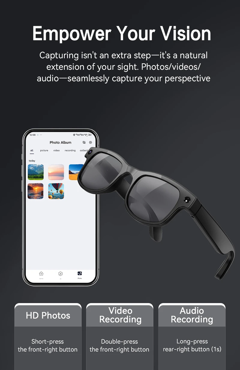 New AI Smart Glasses 800W Pixel Camera 1200P Video Recording AI Translation Music Control Intelligent Wearable Device 2025 Hot