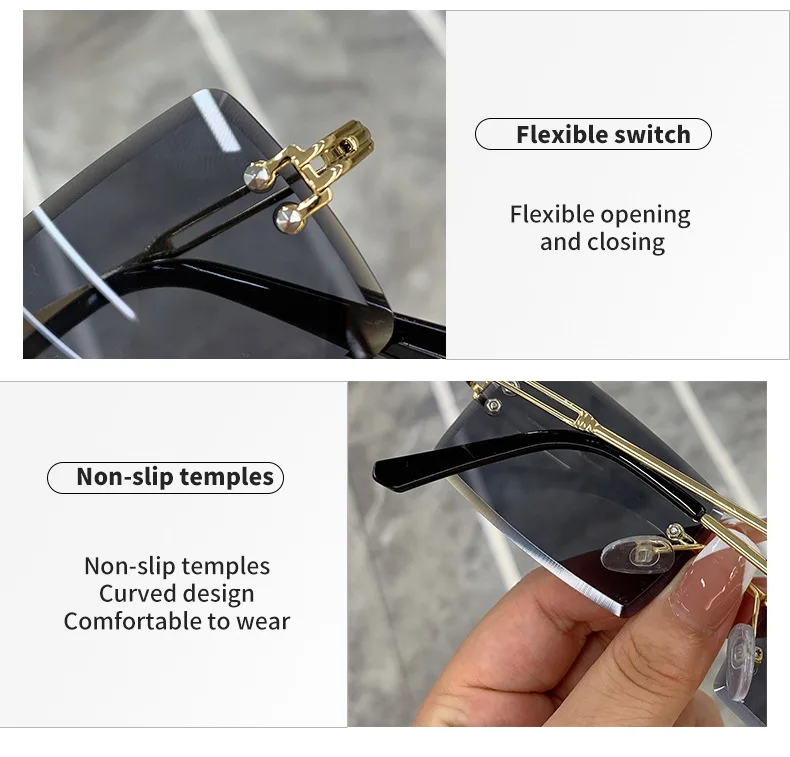 New Borderless Rectangle Sunglasses Women's Metal Square Fashion Sun Glasses Women's Summer Travel Eyewear UV400 Gafas De Sol