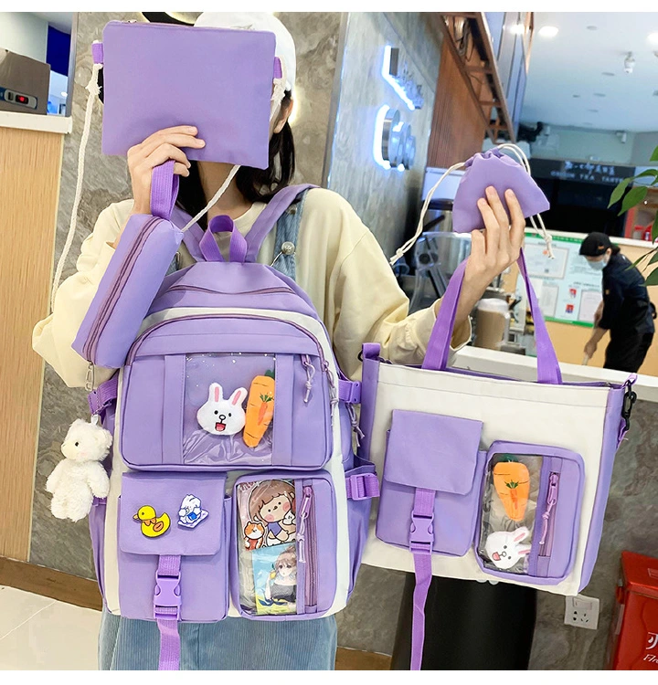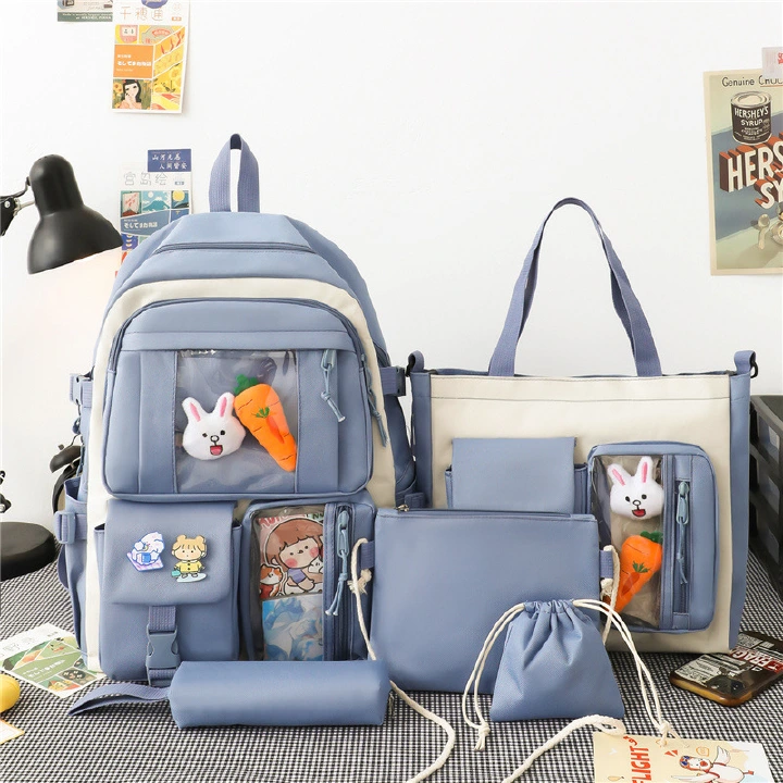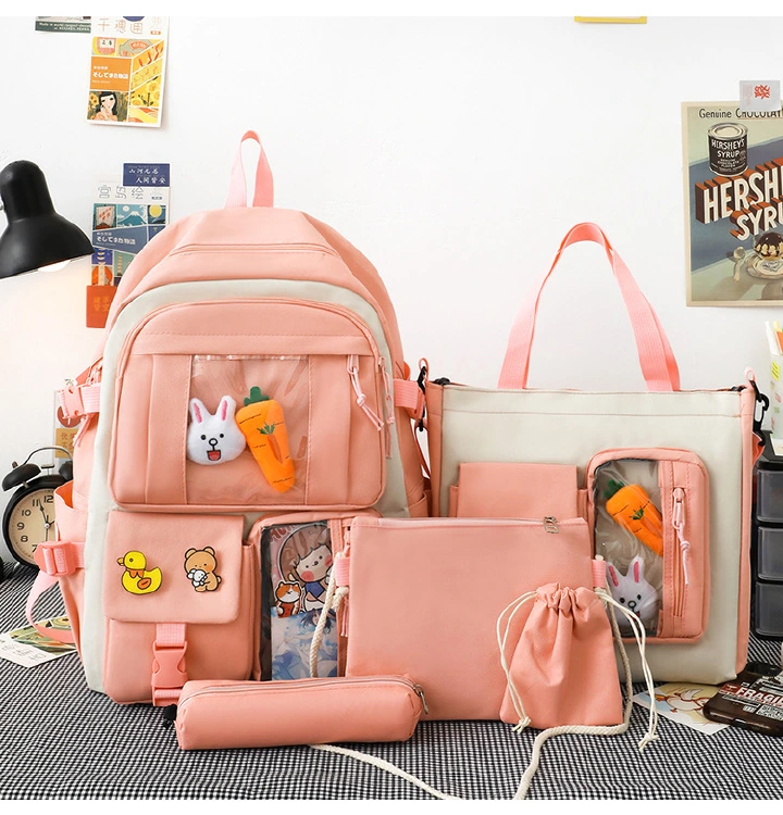 New fashion five-piece schoolbag light student schoolbag large-capacity backpack textbook bag travel bag